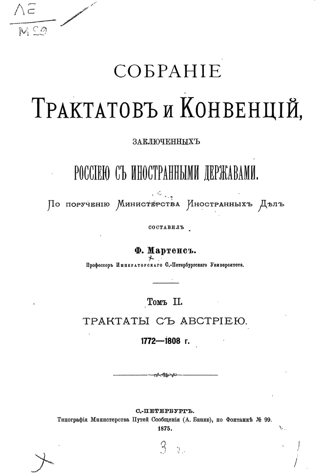 Собрание Трактатов и Конвенций, заключенных Россией с иностранными державами. Том II. Трактаты с Австрией.
