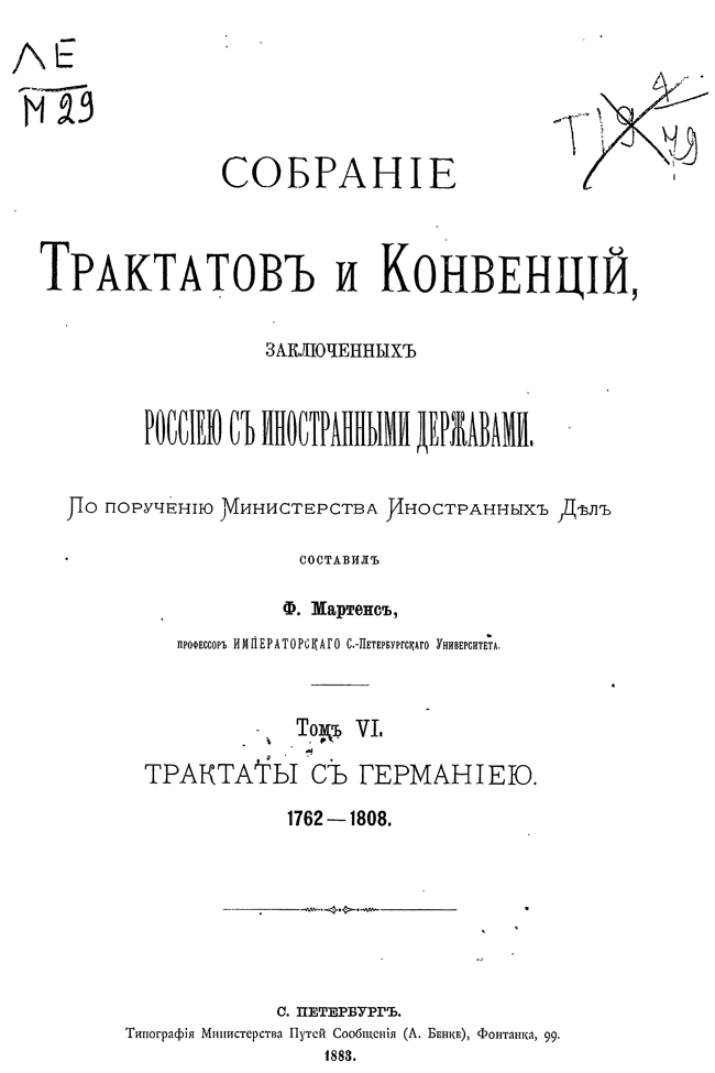 Собрание Трактатов и Конвенций, заключенных Россией с иностранными державами. Том VI. Трактаты с Германией.