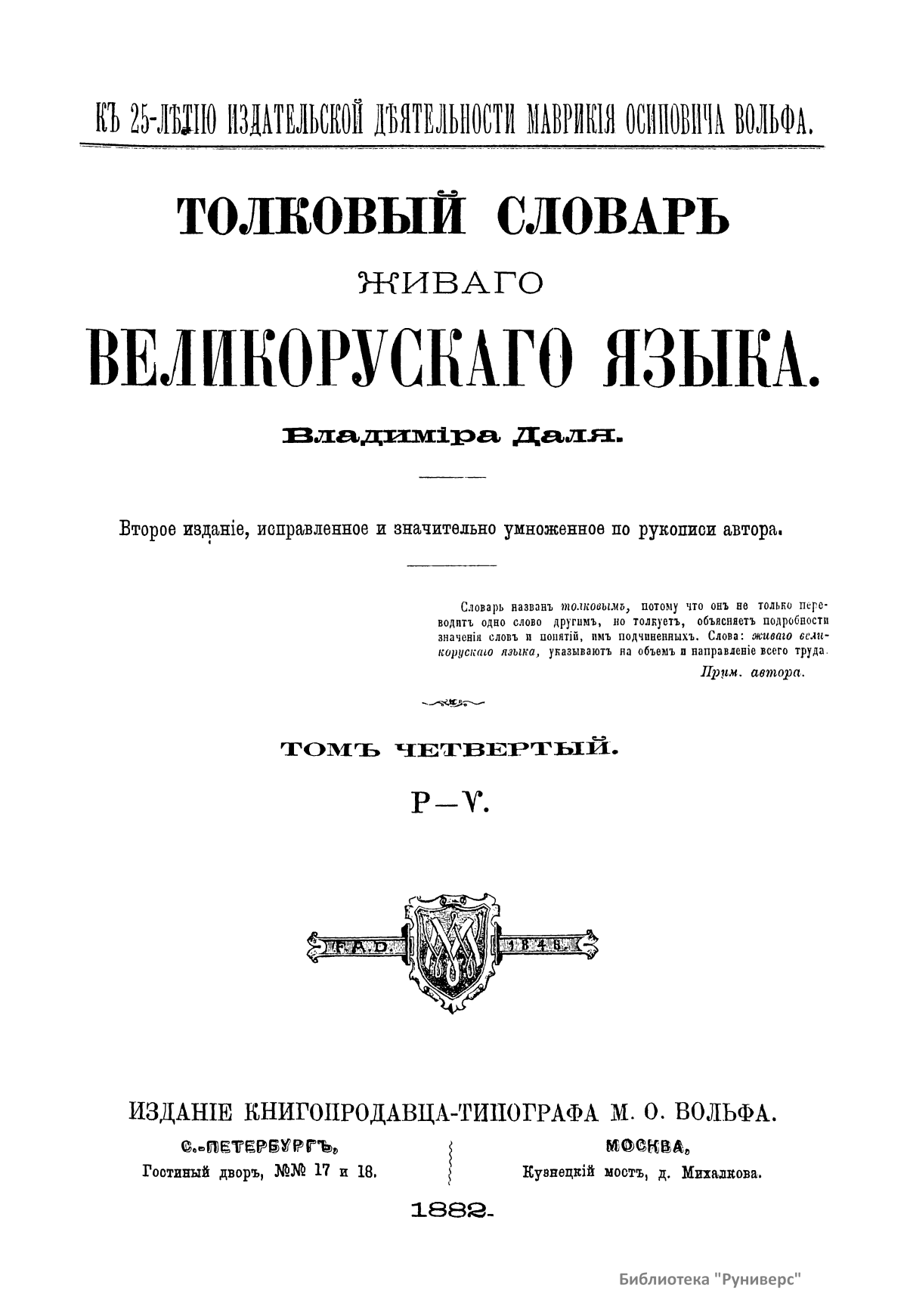 Толковый словарь живого великорусского языка. Том четвертый. Р — Ѵ