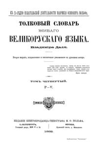 Толковый словарь живаго великорускаго языка Владимiра Даля. Том четвертый. Р — Ѵ