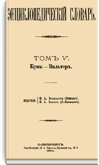 Самая крупная дореволюционная русская универсальная энциклопедия, выпущенная акционерным издательским обществом «Ф. А. Брокгауз — И. А. Ефрон». Состоит из 86 томов (82 основных и 4 дополнительных), выходивших в течение 1890-1907 годов. Первые 8 томов (до буквы «В») вышли под общей редакцией профессора И. Е. Андреевского и в основном содержали переводы на русский язык статей знаменитой немецкой энциклопедии Брокгауза «Konversations Lexikon».