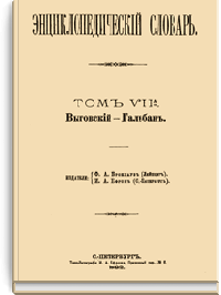 Самая крупная дореволюционная русская универсальная энциклопедия, выпущенная акционерным издательским обществом «Ф. А. Брокгауз — И. А. Ефрон». Состоит из 86 томов (82 основных и 4 дополнительных), выходивших в течение 1890-1907 годов. Первые 8 томов (до буквы «В») вышли под общей редакцией профессора И. Е. Андреевского и в основном содержали переводы на русский язык статей знаменитой немецкой энциклопедии Брокгауза «Konversations Lexikon».