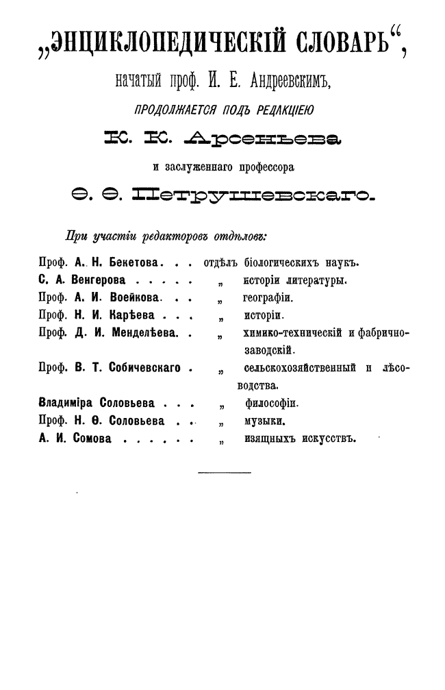 После кончины Андреевского новая редакция во главе с К. К. Арсеньевым и Ф. Ф. Петрушевским значительно увеличила число оригинальных статей и привлекла к сотрудничеству широкий круг общественно-политических деятелей либерального толка (от П. Н. Милюкова, В. И. Герье, Н. И. Кареева до легальных марксистов П. Б. Струве и М. И. Туган-Барановского, раздел философии вел крупнейший русский религиозный философ Вл. С. Соловьев), а также таких крупнейших ученых как Д. И. Менделеев, А. И. Бекетов, А. И. Воейков, Д. И. Анучин, Ю. М. Шокальский, Н. М. Книпович, А. О. Ковалевский, А. И. Советов, В. С. Соловьев и др.