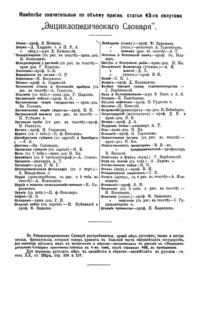 Самая крупная дореволюционная русская универсальная энциклопедия, выпущенная акционерным издательским обществом «Ф. А. Брокгауз — И. А. Ефрон». Состоит из 86 томов (82 основных и 4 дополнительных), выходивших в течение 1890-1907 годов. Первые 8 томов (до буквы «В») вышли под общей редакцией профессора И. Е. Андреевского и в основном содержали переводы на русский язык статей знаменитой немецкой энциклопедии Брокгауза «Konversations Lexikon».