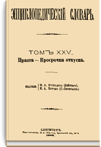 Самая крупная дореволюционная русская универсальная энциклопедия, выпущенная акционерным издательским обществом «Ф. А. Брокгауз — И. А. Ефрон». Состоит из 86 томов (82 основных и 4 дополнительных), выходивших в течение 1890-1907 годов. Первые 8 томов (до буквы «В») вышли под общей редакцией профессора И. Е. Андреевского и в основном содержали переводы на русский язык статей знаменитой немецкой энциклопедии Брокгауза «Konversations Lexikon».