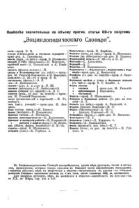 Самая крупная дореволюционная русская универсальная энциклопедия, выпущенная акционерным издательским обществом «Ф. А. Брокгауз — И. А. Ефрон». Состоит из 86 томов (82 основных и 4 дополнительных), выходивших в течение 1890-1907 годов. Первые 8 томов (до буквы «В») вышли под общей редакцией профессора И. Е. Андреевского и в основном содержали переводы на русский язык статей знаменитой немецкой энциклопедии Брокгауза «Konversations Lexikon».