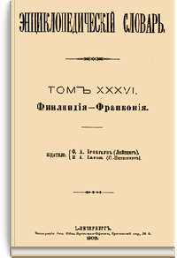 Самая крупная дореволюционная русская универсальная энциклопедия, выпущенная акционерным издательским обществом «Ф. А. Брокгауз — И. А. Ефрон». Состоит из 86 томов (82 основных и 4 дополнительных), выходивших в течение 1890-1907 годов. Первые 8 томов (до буквы «В») вышли под общей редакцией профессора И. Е. Андреевского и в основном содержали переводы на русский язык статей знаменитой немецкой энциклопедии Брокгауза «Konversations Lexikon».