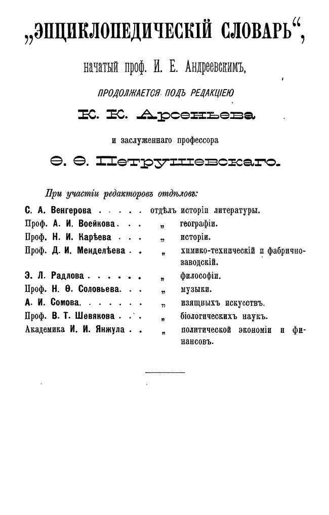 После кончины Андреевского новая редакция во главе с К. К. Арсеньевым и Ф. Ф. Петрушевским значительно увеличила число оригинальных статей и привлекла к сотрудничеству широкий круг общественно-политических деятелей либерального толка (от П. Н. Милюкова, В. И. Герье, Н. И. Кареева до легальных марксистов П. Б. Струве и М. И. Туган-Барановского, раздел философии вел крупнейший русский религиозный философ Вл. С. Соловьев), а также таких крупнейших ученых как Д. И. Менделеев, А. И. Бекетов, А. И. Воейков, Д. И. Анучин, Ю. М. Шокальский, Н. М. Книпович, А. О. Ковалевский, А. И. Советов, В. С. Соловьев и др.