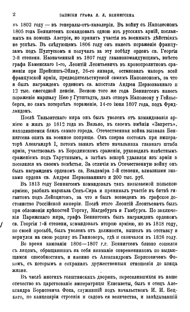 Записки графа Л.Л. Беннигсена о войне с Наполеоном 1807 года