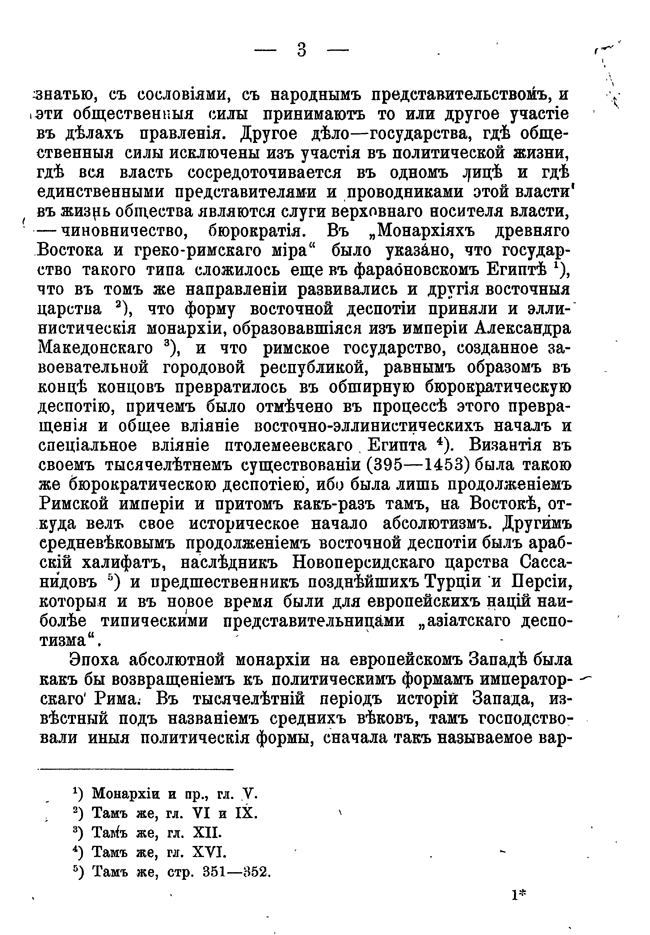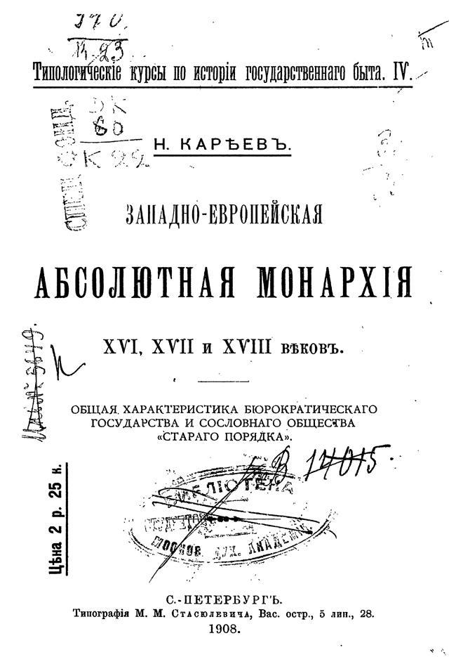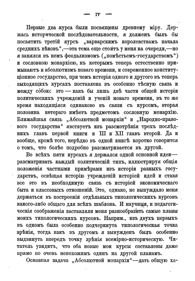 Кареев рассматривает каждый политический тип, иллюстрируя общие положения частными примерами из истории разных государств, освещая историю учреждений историей идей и ставя все это в необходимую связь с историей экономического быта и классовых отношений.