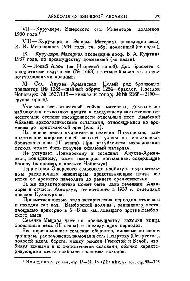 Материалы по археологии Бзыбской Абхазии.