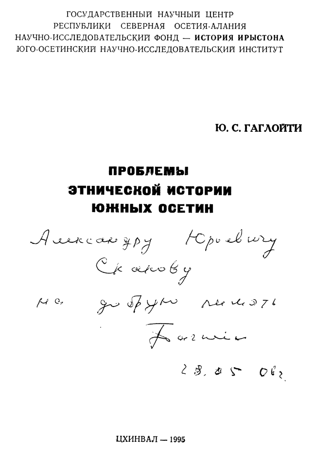 В представленной книге Гаглойти рассматривается история формирования южной ветви осетинского народа. Несмотря на наличие античных и древнегрузинских источников, в историографии данного вопроса прочно утвердился ряд стереотипов и ошибочных представлений. Автор анализирует имеющиеся на эту тему исследования и вносит свои коррективы.