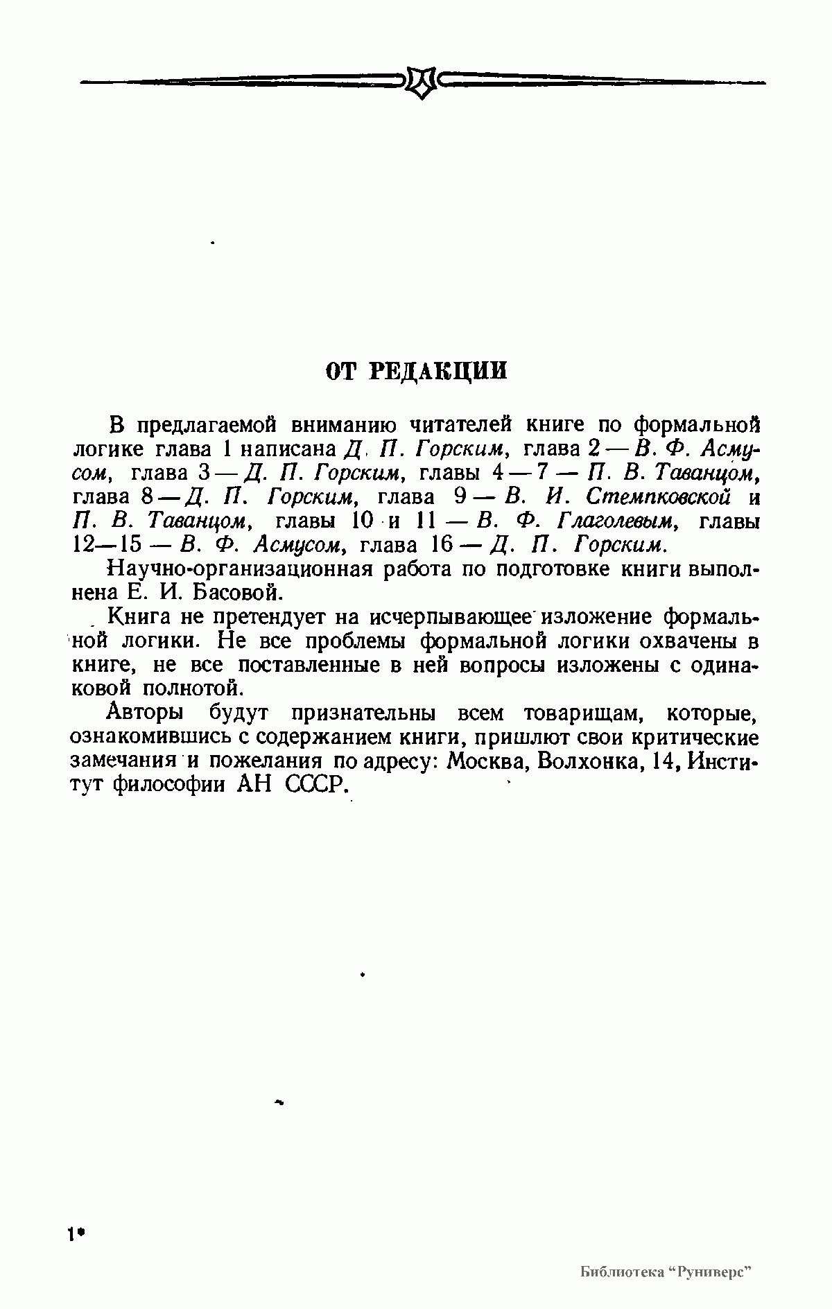 , глава 3 — Д. П. Горским, главы 4 — 7 —
