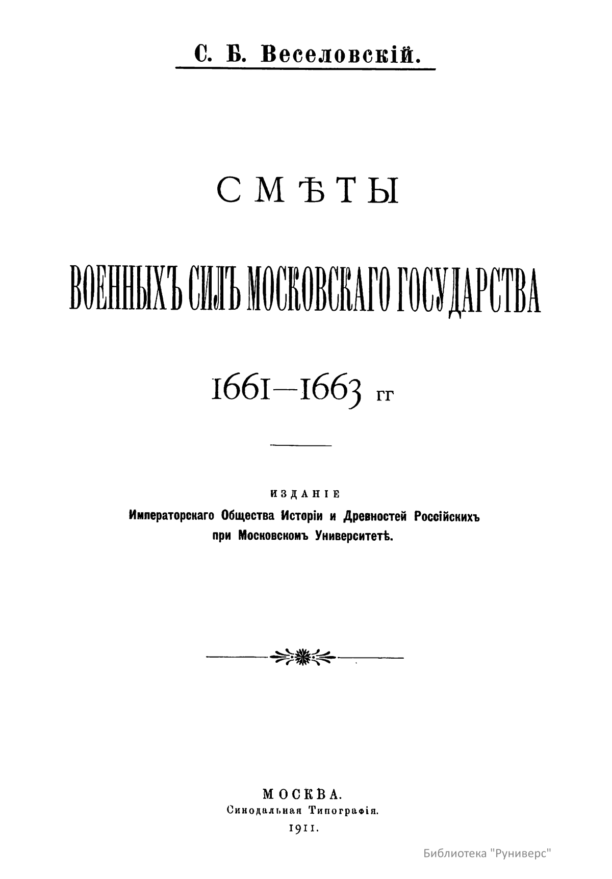 СМѢТЫ ВОЕННЫХЪ СИЛЪ МОСКОВСКАГО ГОСУДАРСТВА 1661—1663 гг