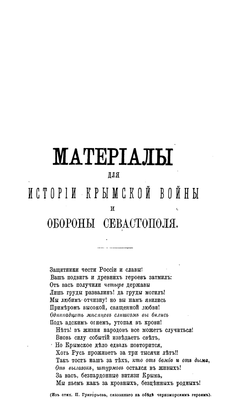 Матерiалы для исторiи Крымской войны и обороны Севастополя