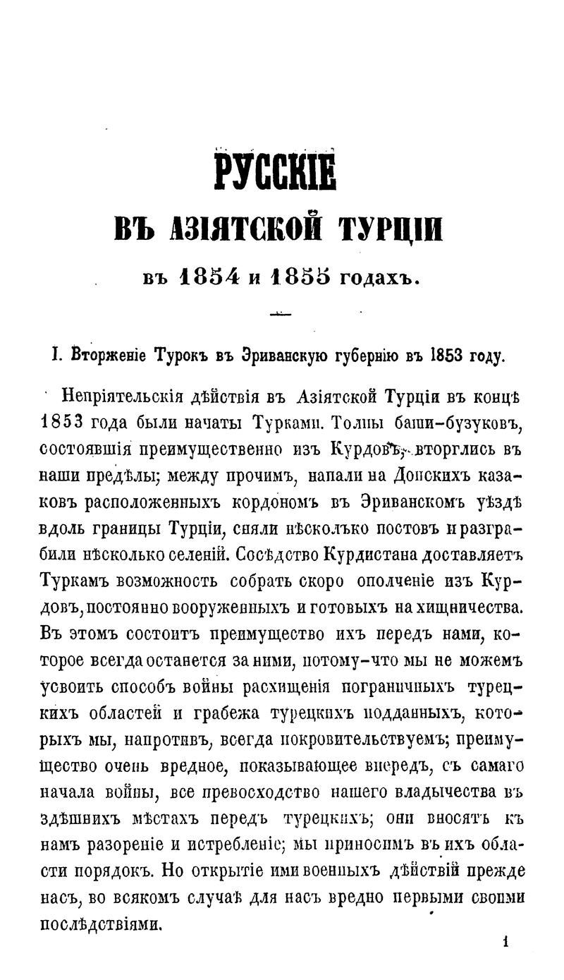 Автор книги, генерал-майор М. Лихутин, рассказывает о военных действиях русских в азиатской Турции, вызванных грабительским вторжением турок в российскую пограничную Эриванскую губернию в 1853 году. Эта губерния в то время была населена армянами григорианского вероисповедания – самыми древними жителями этих мест, и мусульманами разных племен – персами, татарами, курдами, которые пришли в разные времена как завоеватели и основались на развалинах древнего армянского царства. Прошедшие века накопили между этими народами много неоплаченных взаимных оскорблений, поддерживали дикие привычки, склонность к грабежу и насилиям, здесь было труднее, чем во внутренних русских губерниях, сохранить справедливое управление. Турецкое вторжение показало сомнительное положение края и возможность многочисленных волнений.