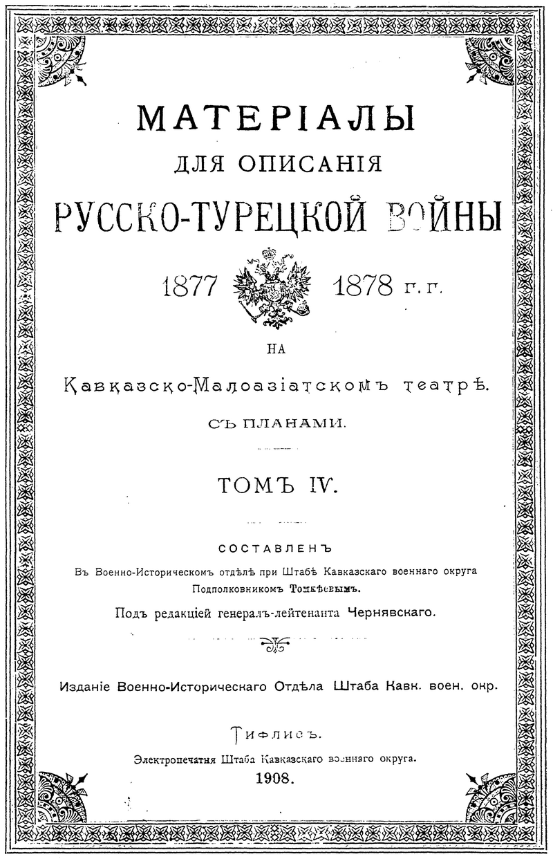 Материалы для описания русско-турецкой войны 1877-1878 гг. на Кавказско-Малоазиатском театре. Том IV