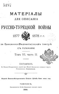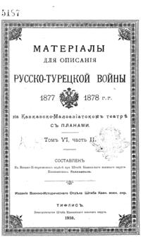 Материалы для описания русско-турецкой войны 1877-1878 гг. на Кавказско-Малоазиатском театре. Том VI, часть II