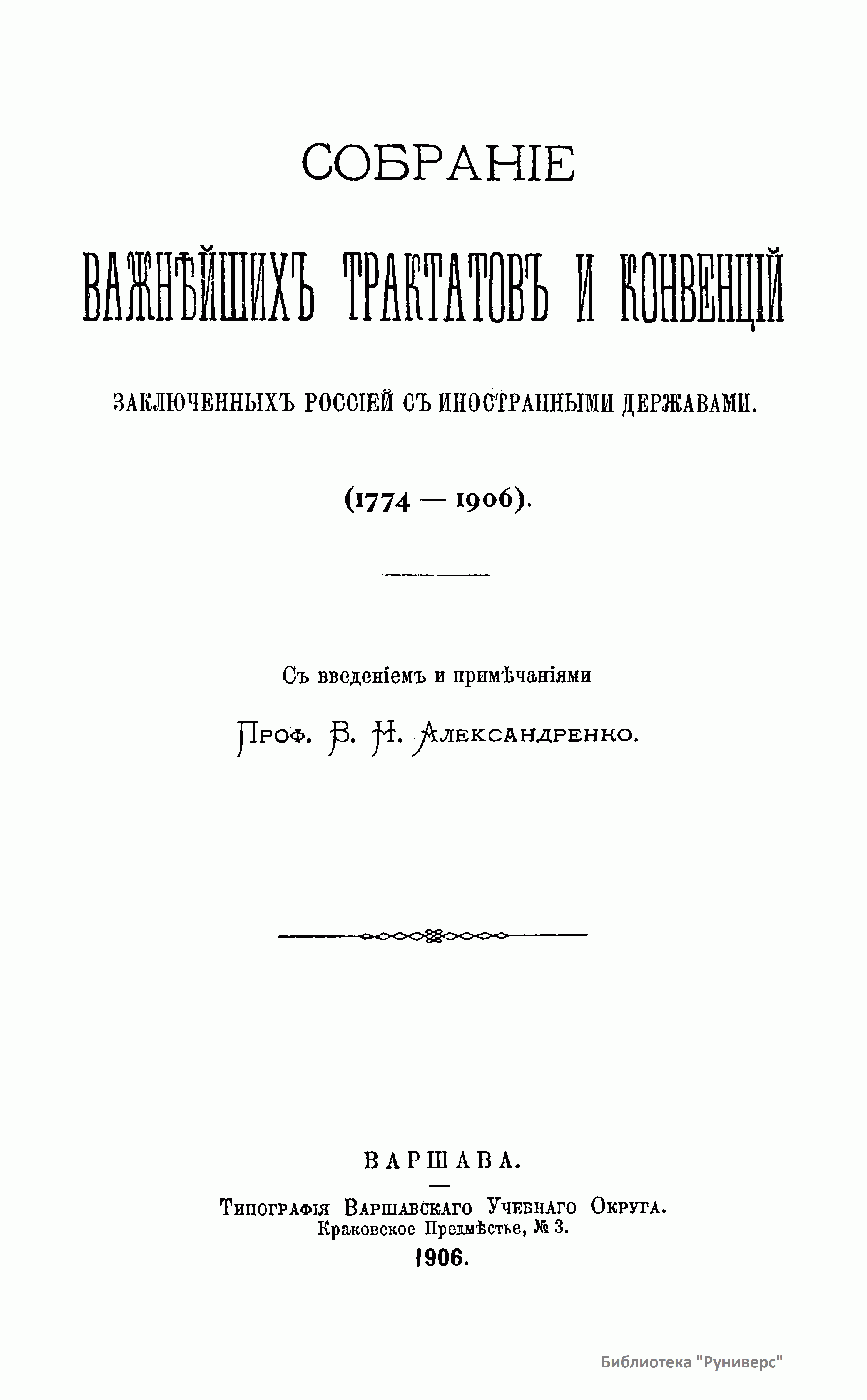 Собранiе важнѣйшихъ трактатовъ и конвенцiй, заключенныхъ Россiей съ иностранными державами