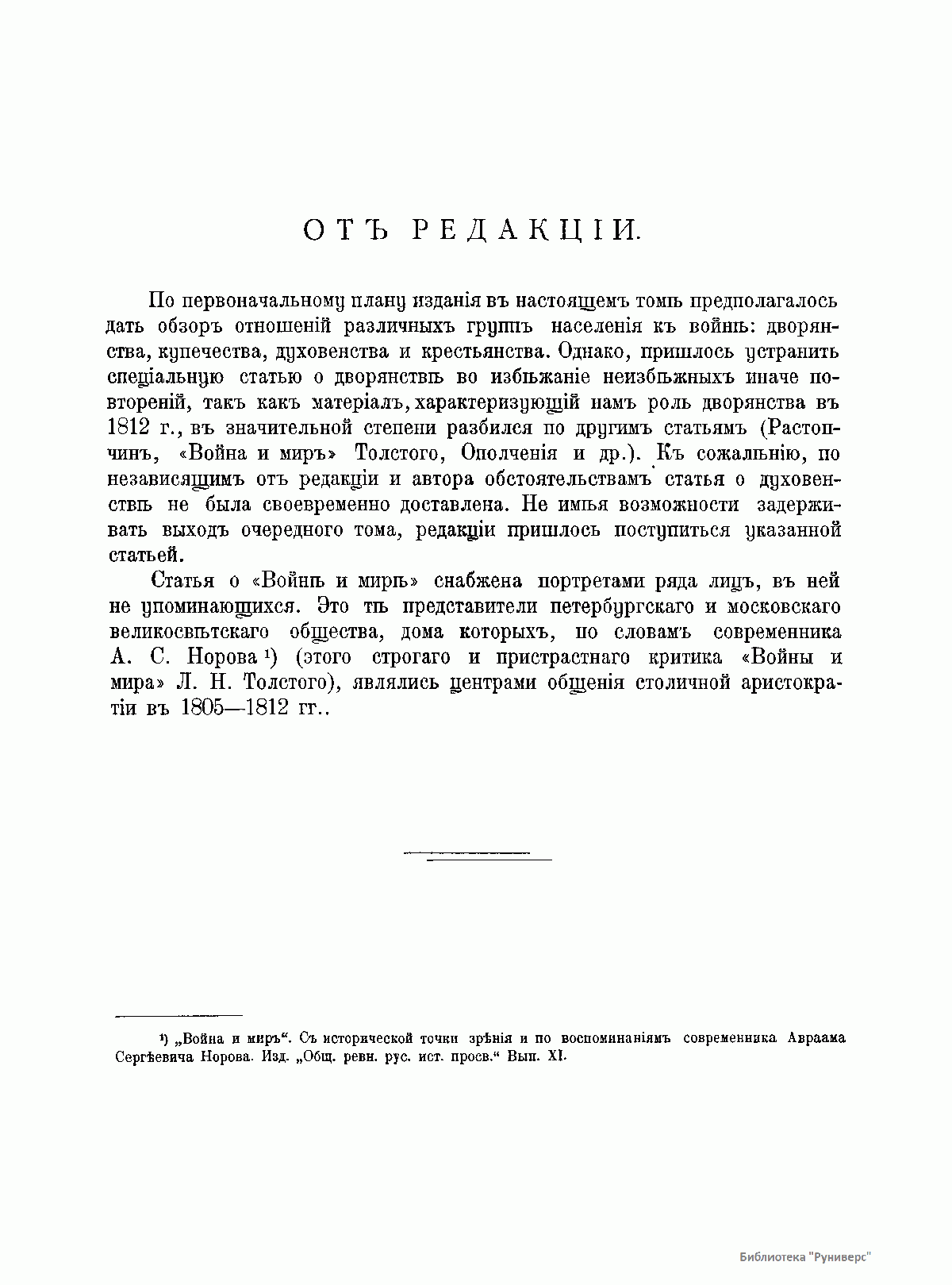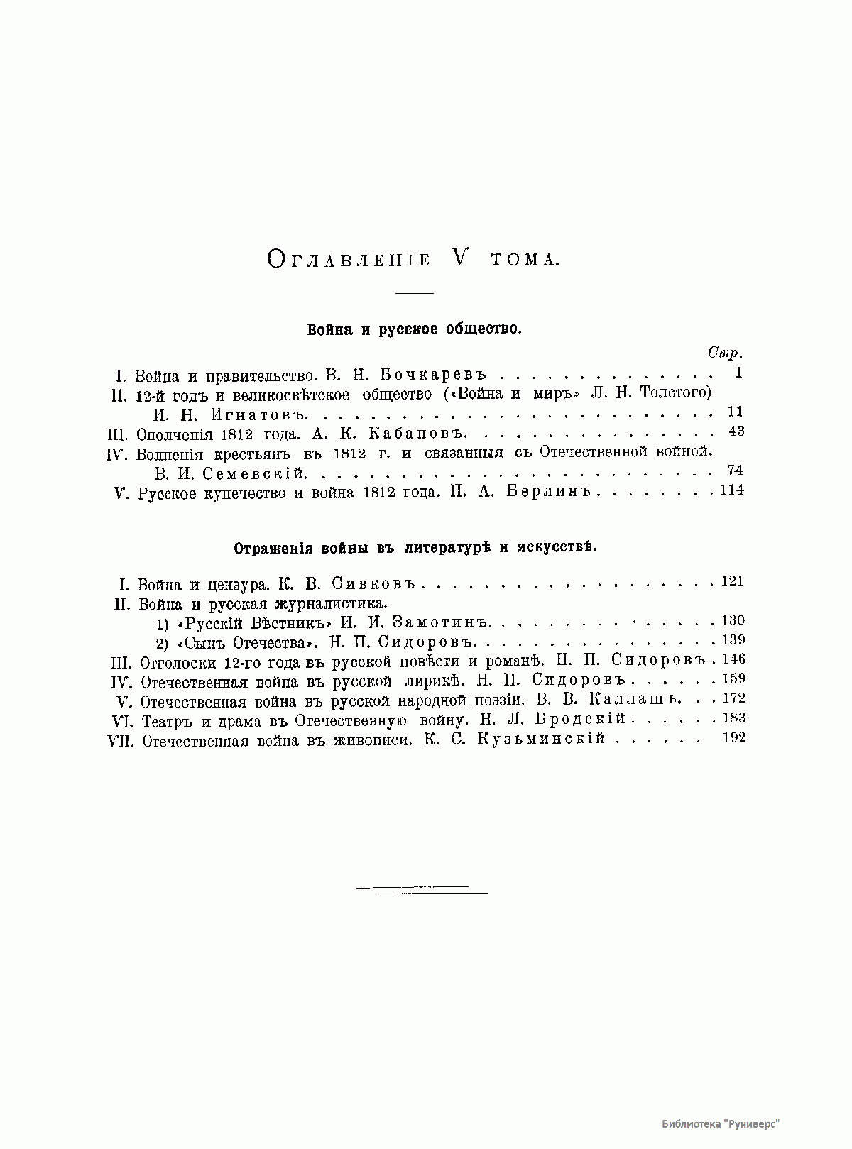 Настоящее научное издание – плод кропотливого коллективного труда Исторической комиссии, которая поставила перед собой цель дать объективную картину событий. Составляя план книги, авторы руководствовались следующими соображениями. Отечественная война 1812 года – один из самых драматических и вместе с тем самых значительных по последствиям моментов русской истории. Только поставленная в рамки европейской истории, изучаемая в тесной связи со всей эпохой, она может быть понята и оценена надлежащим образом. Поэтому книга начинается с эпохи Екатерины II, с франко-русских и вообще международных отношений ее времени, с первых столкновений революции с Европой, а заканчивается не вступлением русских войск в Париж и не Венским конгрессом, а концом царствования Александра I. Авторы критически относятся к политике Александра I в отношении похода в Европу, после того как Наполеон потерпел поражение в России, так как освобождение Европы «положило первые камни» тому самому могуществу Пруссии и Австрии, в котором коренятся все политические беды России. Недаром Кутузов своим трезвым умом понимал всю ненужность и опасность такого политического благотворительства. Причины такой «сентиментальной политики» авторы видят в том, что правительство не хотело считаться с интересами страны, а руководствовалось только личными видами. Такая политика, по мнению авторов, проводилась в течение всего XIX века. Авторы не считают Отечественную войну событием исключительно военным. Они делают попытку разглядеть облик русского общества, определить долю участия в войне русских общественных групп, выяснить ту меру признательности, которой потомки обязаны каждой из них. Многие из авторов имели возможность использовать новые архивные данные, большинству же приходилось оперировать уже опубликованным материалом. Таким образом, издание дает и сводку того материала, который был известен в значительной мере только специалистам. В книге представлены различные иллюстрации.