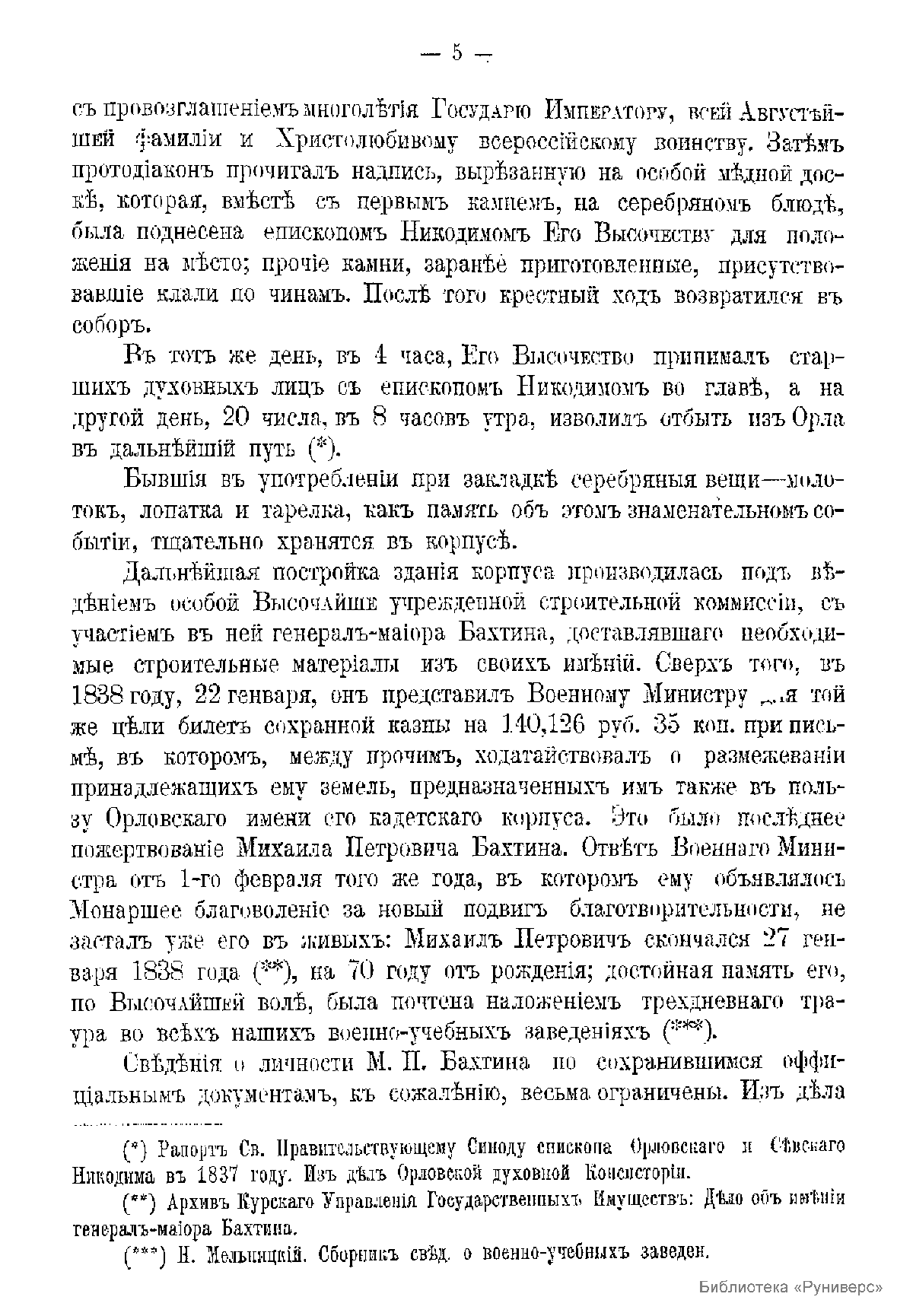 Краткий исторический очерк Орловского-Бахтина кадетского корпуса, с приложением списка бывших воспитанников этого корпуса, окончивших курс за время первого пятидесятилетия со дня его открытия. (1843-1893 гг.)