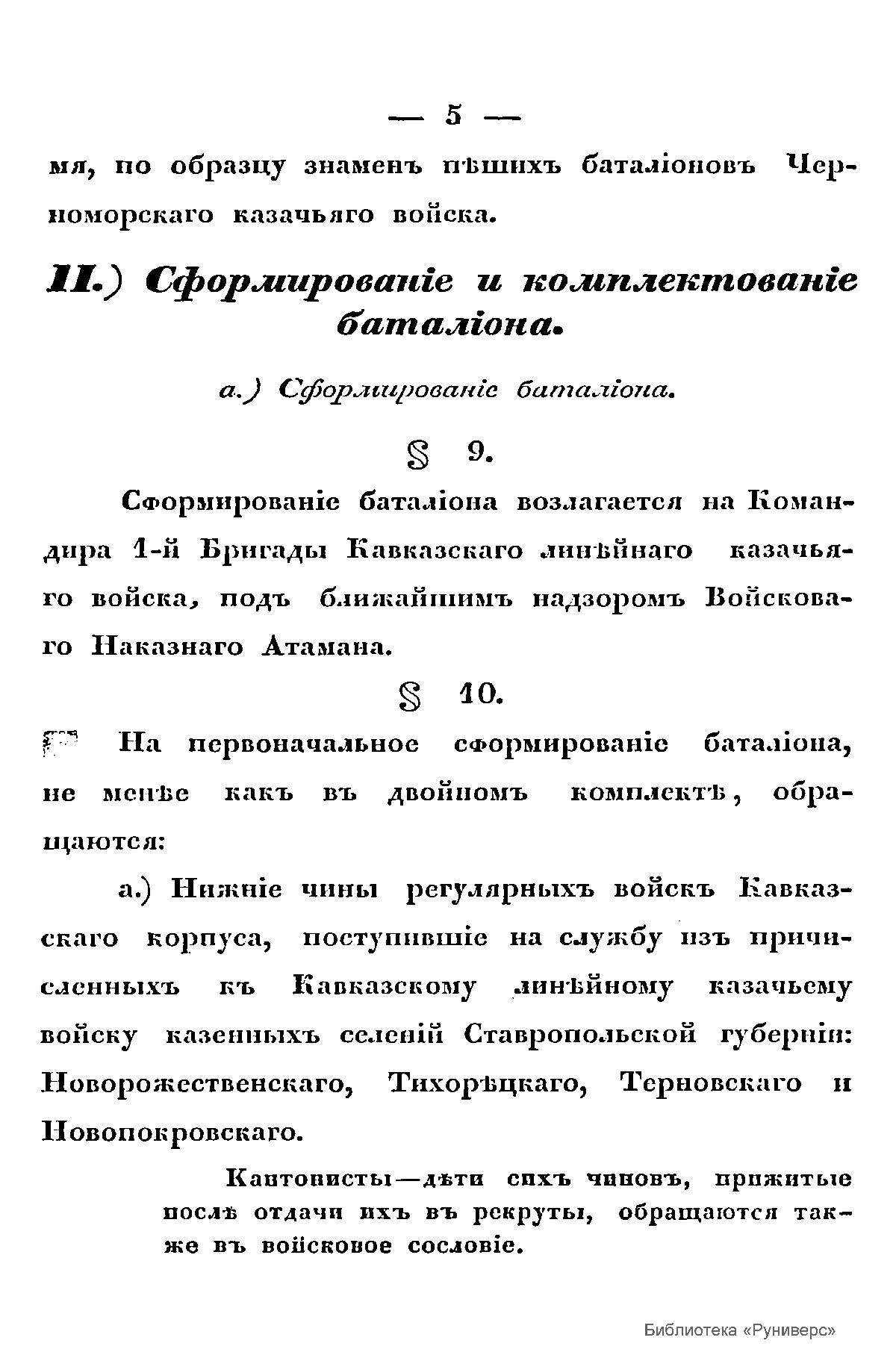 Положенiе о первомъ кавказскомъ пѣшемъ казачьемъ баталiоне
