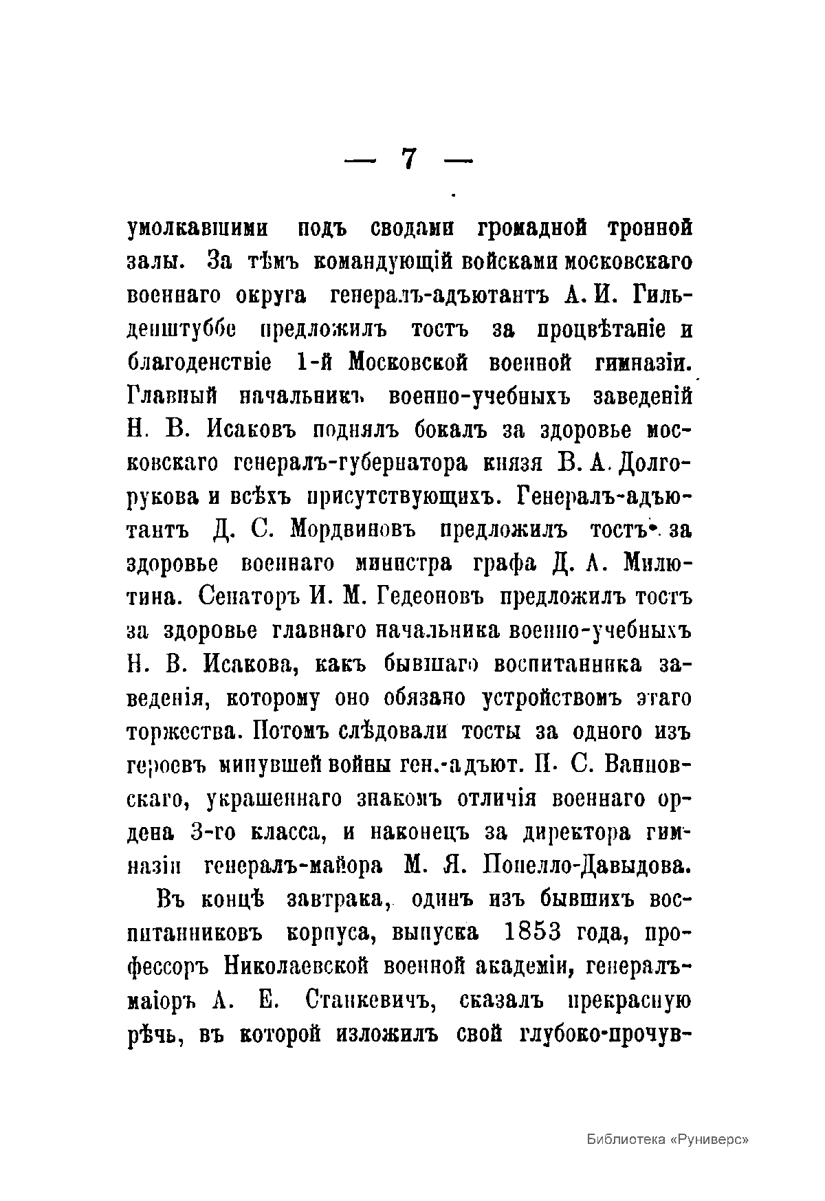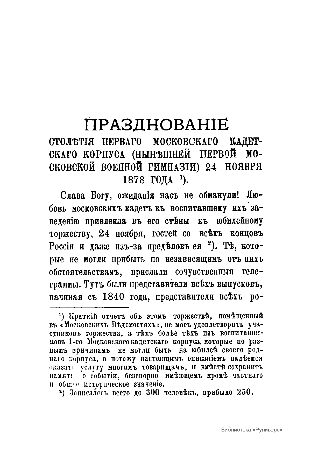 Празднованiе столѣтiя перваго Московскаго кадетскаго корпуса (нынѣшней первой Московской военной гимназiи) 24 ноября 1878 года