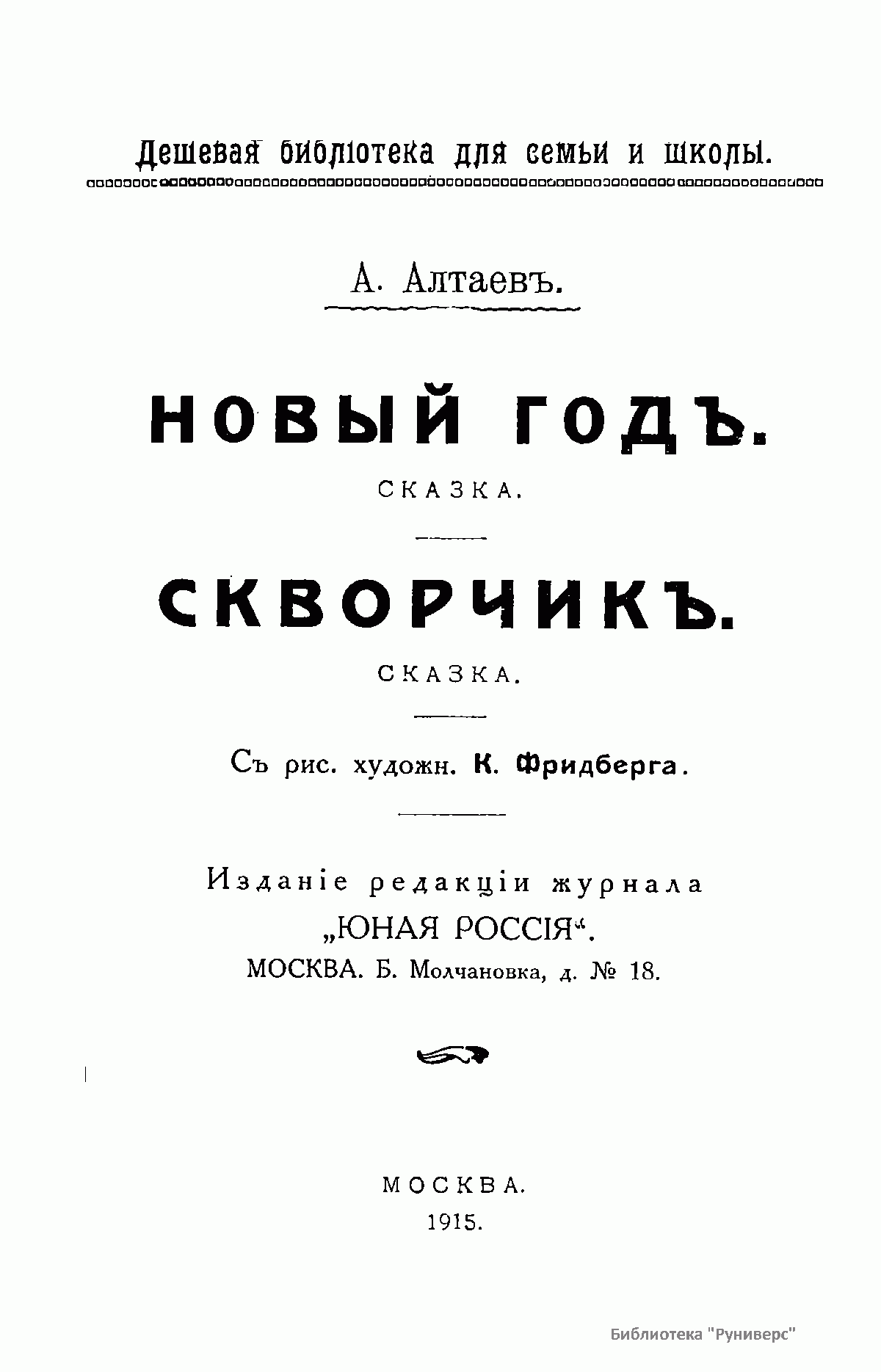 Новый годъ. Сказка. Скворчикъ. Сказка