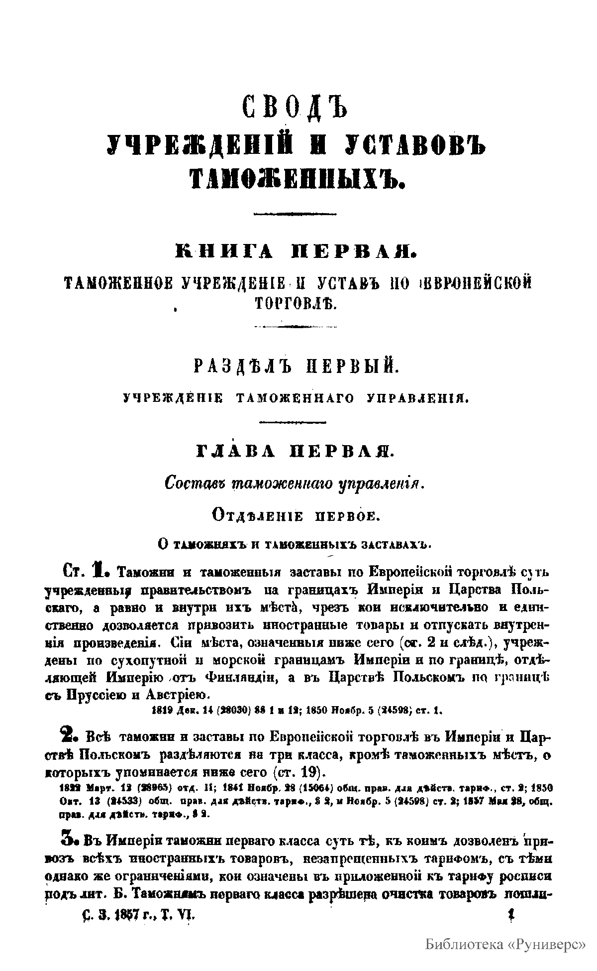 Сводъ законовъ Россiйской имперiи. Томъ шестой. Уставы таможенные