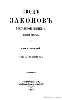 Свод законов Российской империи. Том шестой. Уставы таможенные