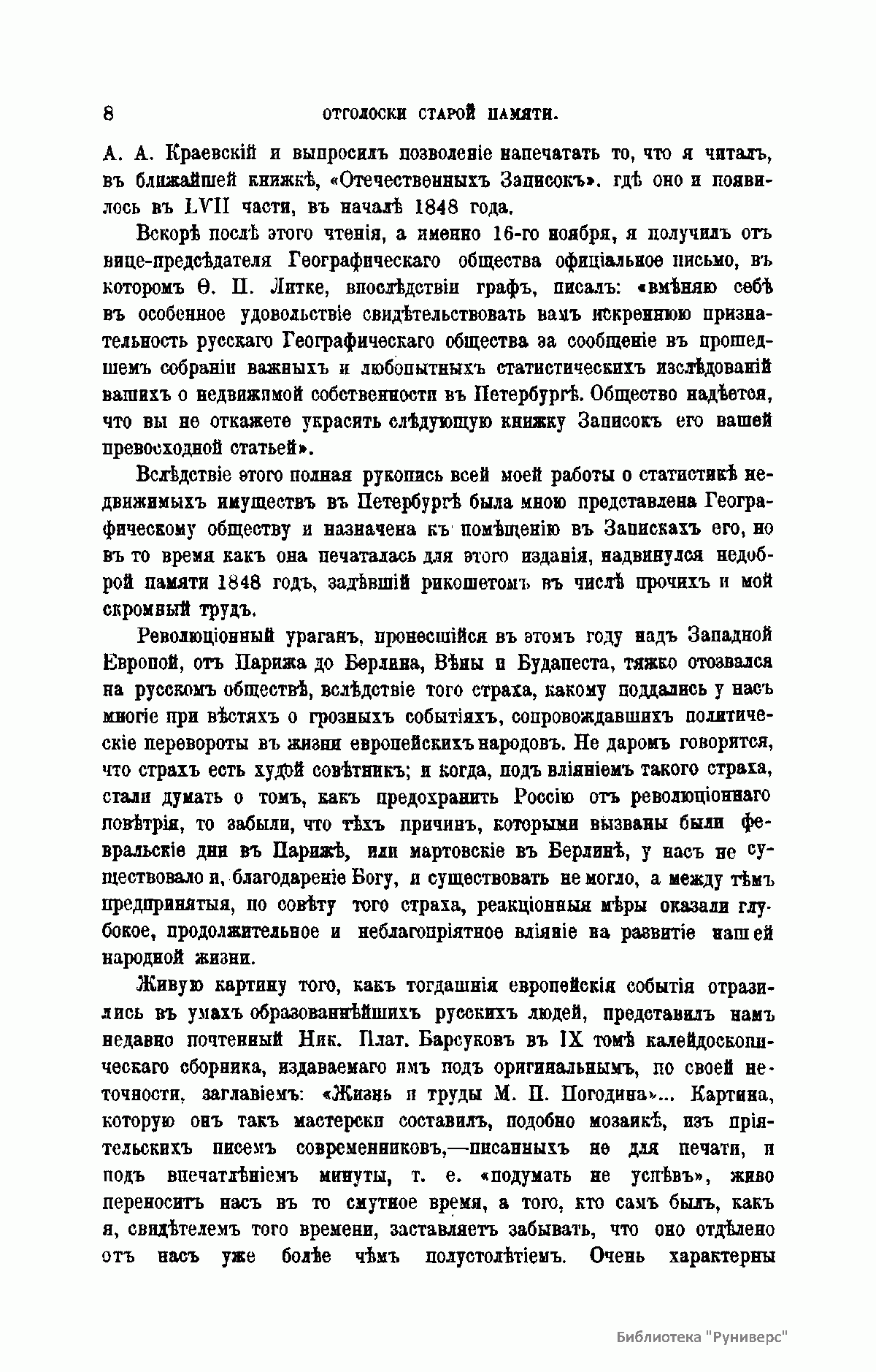 Крупным вкладом в журнал явились записки и дневник А. В. Никитенко (1888-1892), а также записки Н. И. Пирогова (1884-1885, 1887).