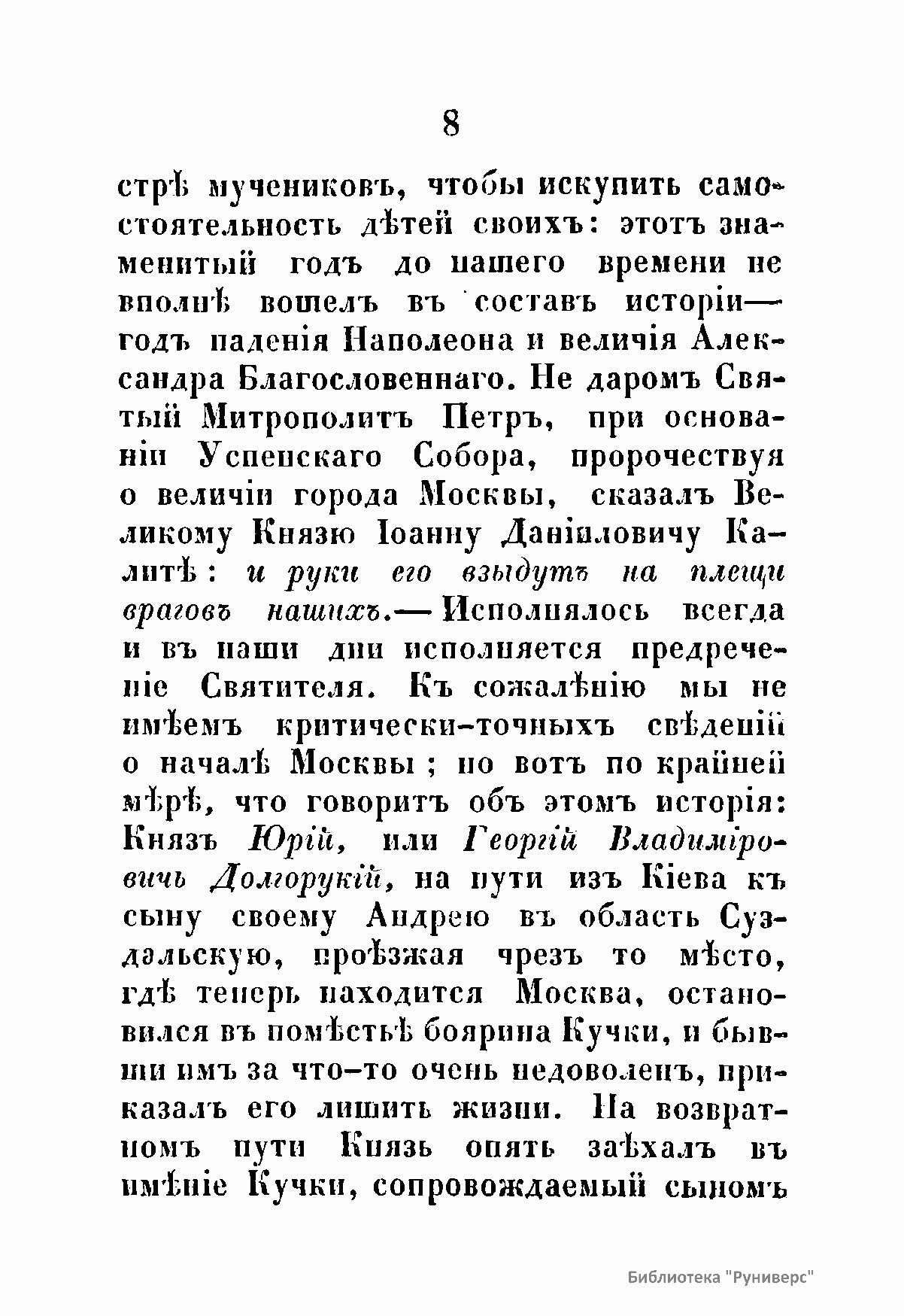 Автор двухтомника И. Милютин считает, что все сказанное о Москве не будет лишним для русского народа. В отношении источников он руководствовался трудами Вельтмана и Пасека, кроме того, лично осматривал каждое замечательное место и всё хронологически сверял с летописями и особенно с «Историей государства Российского» Карамзина. «Кого мы любим, кто вполне заслуживает нашу душевную благодарность, о том мы говорим и не наговоримся, поэтому не мудрено, что мы так часто и так много говорим о нашей Матушке Москве».