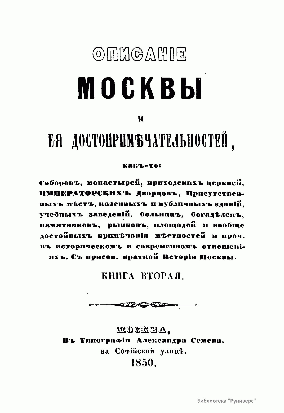 Описанiе Москвы и ея достопримѣчательностей. Книга вторая