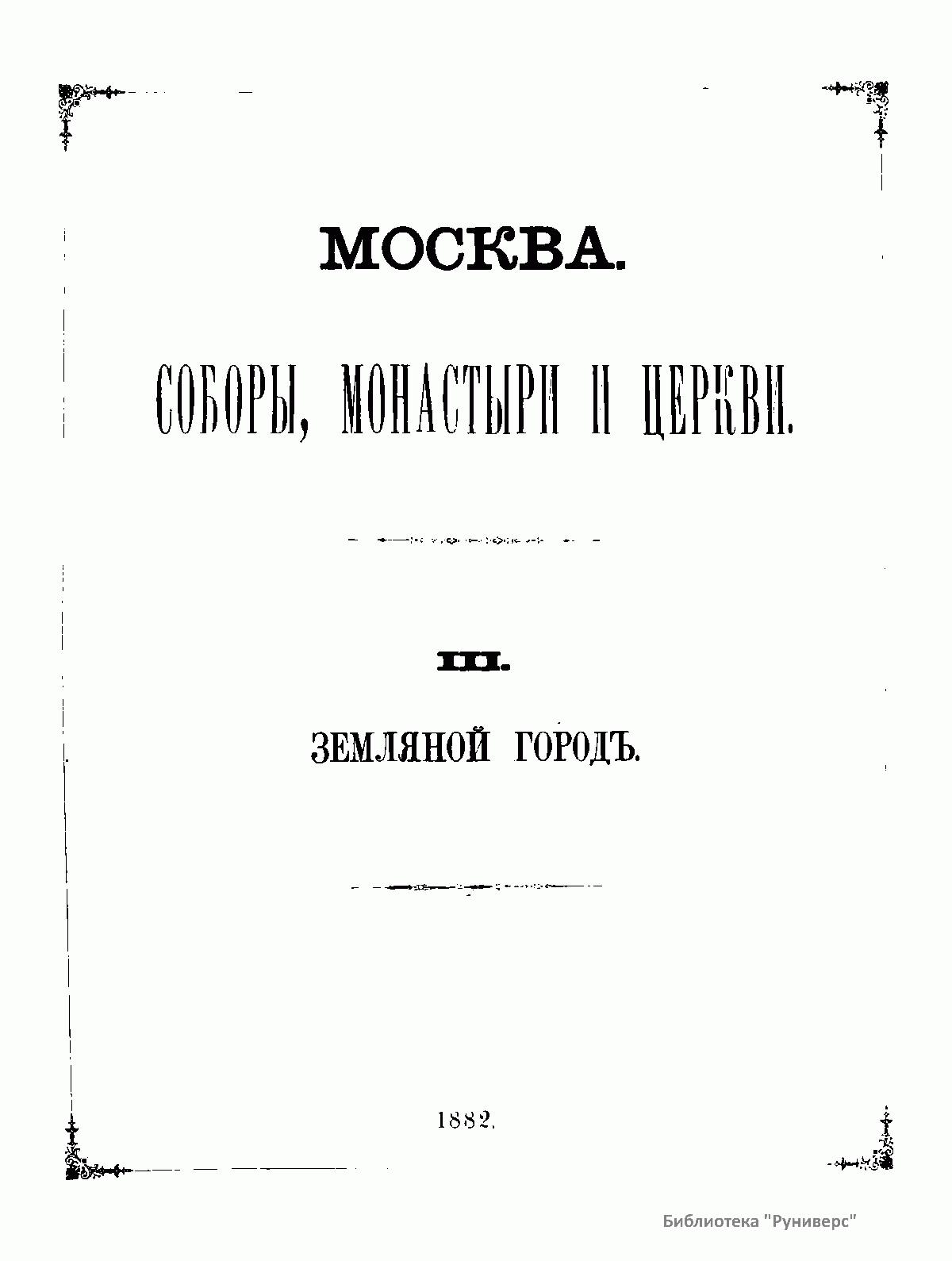 Цель настоящего издания сохранить на память будущему вида существовавших во второй половине девятнадцатого века в Москве храмов, не касаясь при этом того, какое значение они имеют в отношении историческом, археологическом или архитектурном. Местоположение большинства храмов было неудобно для фотографической съемки, поэтому автору не удалось сделать все снимки в одинаковом относительно действительности размере. Издание разделено на четыре части. 1. Кремль и Китай-город – 33 изображения. 2. Белый город – 59 изображений. 3. Земляной город в двух отделениях: а) его часть по левую сторону Москвы-реки – 72 изображения, б) часть Замоскворецкая – 36 изображений. 4. Местность за Земляным городом – 73 изображения. Приложенный к каждой части текст составляет оглавление.