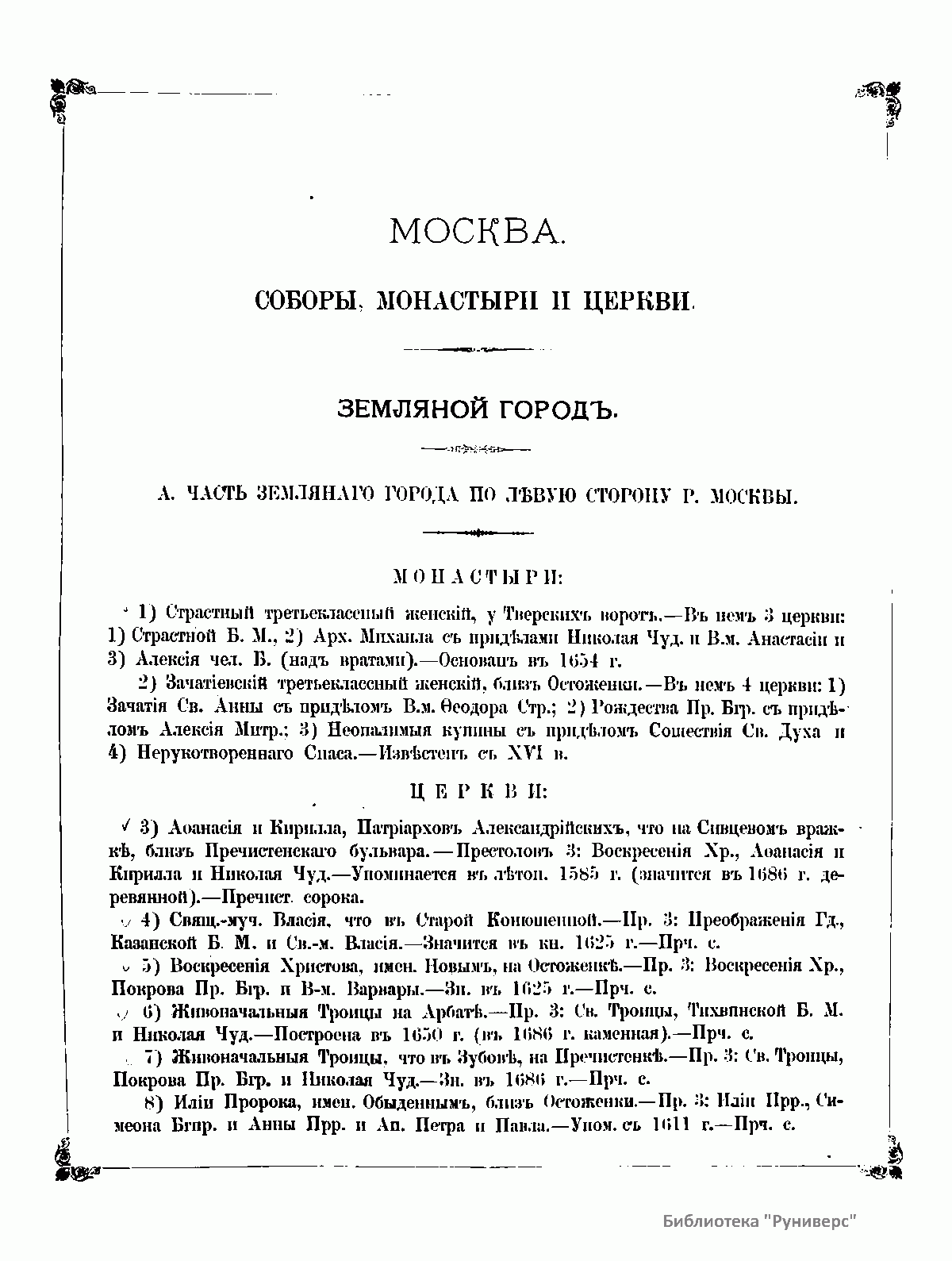 Москва. Соборы, монастыри и церкви. III. Земляной городъ. А. Часть Землянаго города по лѣвую сторону р. Москвы