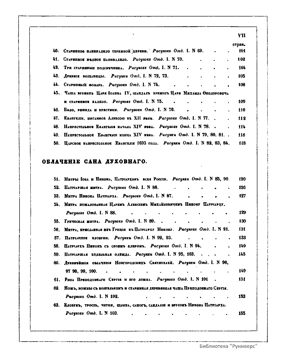 Отделение I. Св. иконы, кресты, утварь храмовая и облачение сана духовного