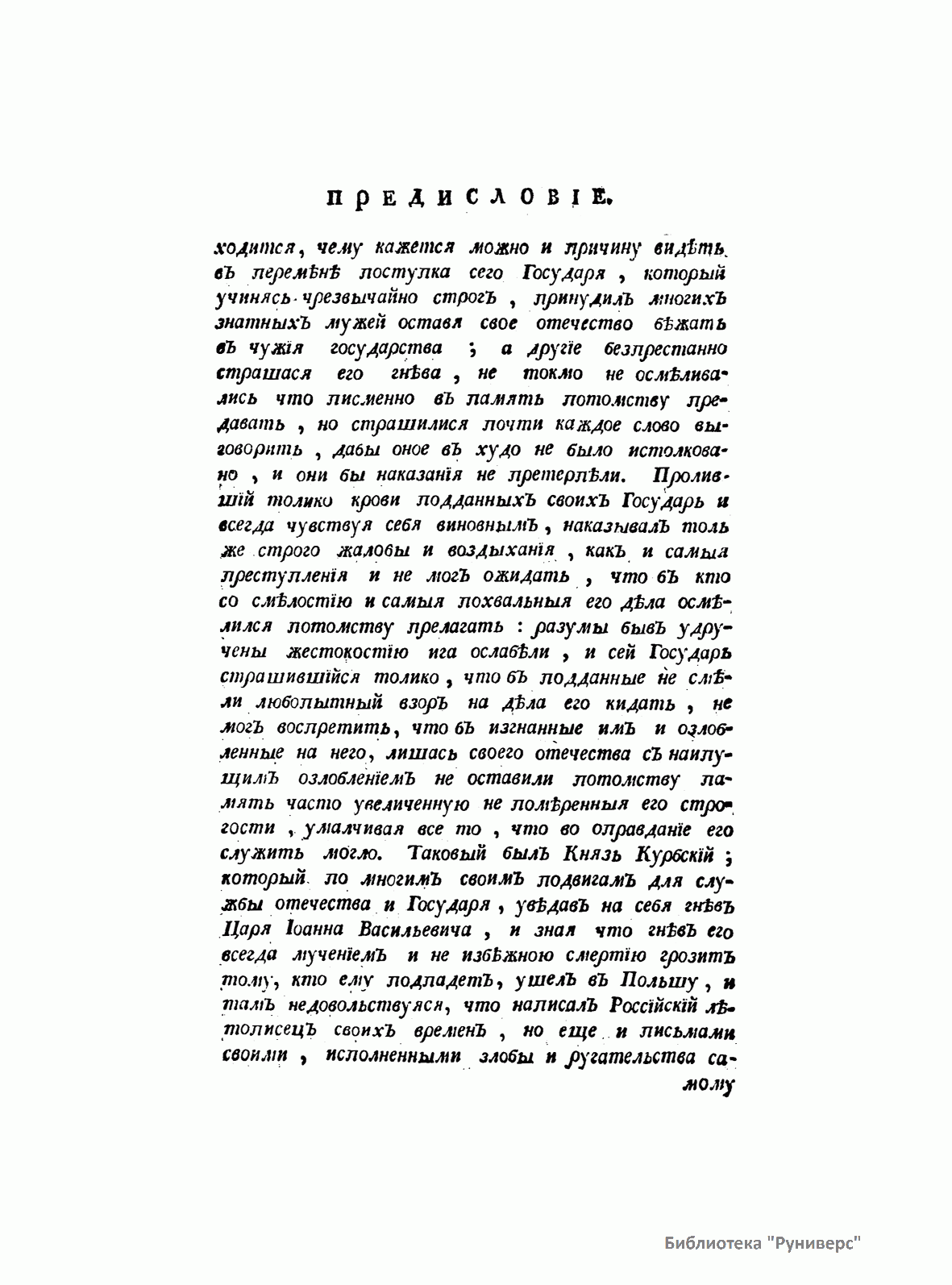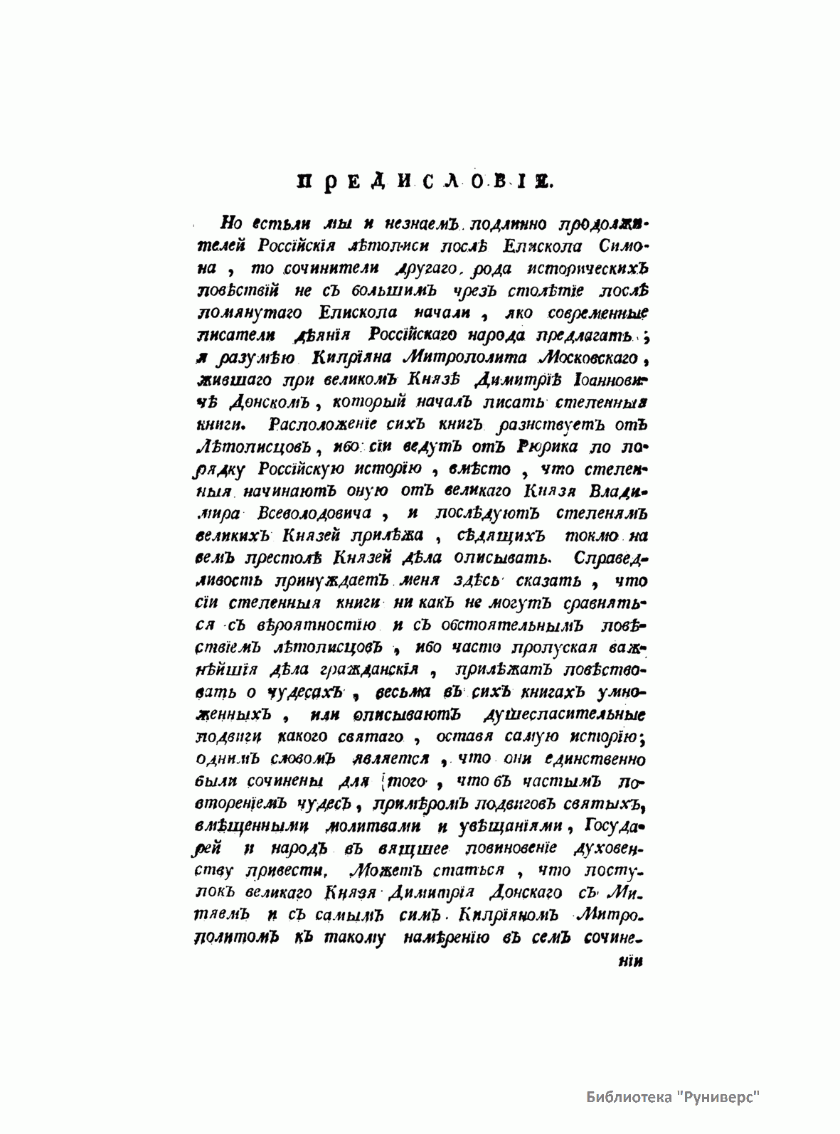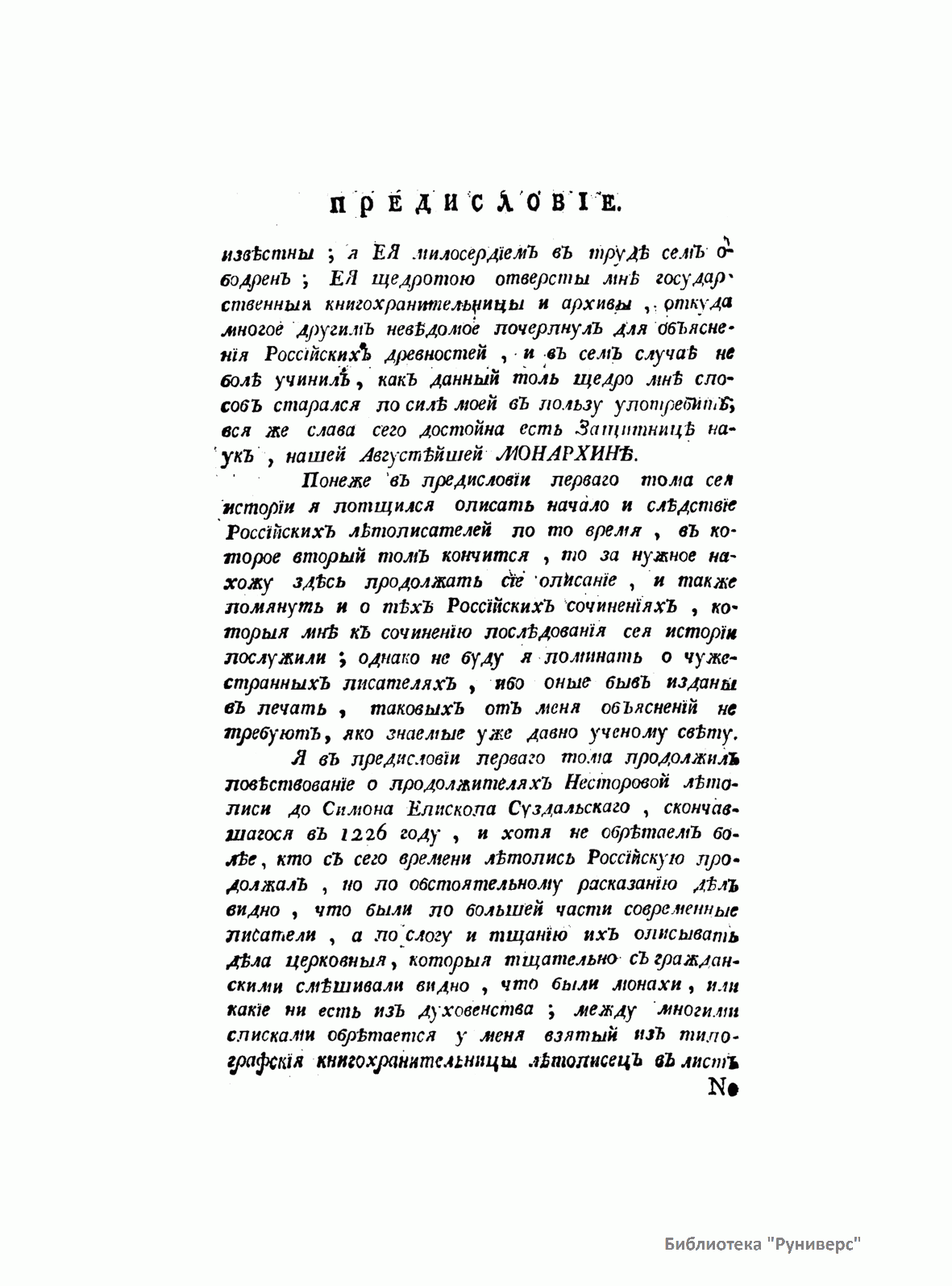 Главным трудом жизни князя М. М. Щербатова (1733–1790) стала «История Российская с древнейших времен», к написанию которой Щербатов приступил по поручению Екатерины II (также князю доверили разобрать и систематизировать архив Петра I). Начиная с 1770 г. вышло 7 томов, охватывающих историю России с древнейших времен до 1610 г. Следуя за идеями французских просветителей, Щербатов не только описывал действия исторических личностей, но и указывал, что за их поступками кроются определенные мысли, идеи, нравы, господствующие в обществе. И это было новым по отношению к предшествующей историографии.