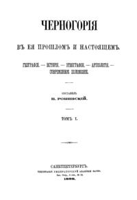 Черногория в ее прошлом и настоящем» - крупнейший вклад в науку известного русского ученого-слависта, этнографа и журналиста. П.А. Ровинский с 1879 по1906 с небольшими перерывами жил в Черногории, где сотрудничал в русской дипломатической миссии и изучал историю и этнографию страны. В своем капитальном труде он обобщает результаты своих многолетних исследований.