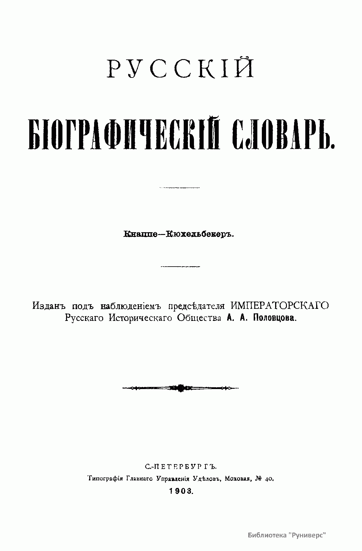 Русскiй бiографическiй словарь. Томъ IX. Кнаппе - Кюхельбекеръ