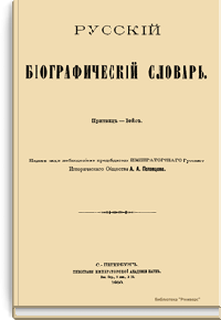 Русский биографический словарь (25 томов), в состав которого вошли имена и биографии виднейших деятелей государства, науки, просвещения и церковных деятелей, издавался Русским историческим обществом с 1896 по 1918 год. Русское историческое общество было основано в Санкт-Петербурге в 1866 году по инициативе известных отечественных историков, военных и государственных деятелей и ставило своей целью всесторонне содействовать развитию русского национального исторического просвещения. Общество пользовалось покровительством и финансовой поддержкой императорской семьи. Его деятельность носила археографический характер. Члены общества собирали исторические документы, которые публиковались в «Сборниках русского исторического общества». Всего до 1920 года (в этом году общество было закрыто) вышло 148 томов. Таким образом в научный оборот было введено большое количество документов XVIII – начала XIX века, ранее недоступных для исследователей, так как документальные материалы архивов царской России были для историков закрыты. К изданию русского биографического словаря, материалы которого до сих пор являются интереснейшим источником для исследователей, Общество приступило по инициативе императора Александра III. Тома биографического словаря выходили не в алфавитном порядке. С 1896 по 1909 год редактором словаря был руководитель Русского исторического общества, промышленник, член Сената Александр Александрович Половцев. Он выпустил 1, 2, 3, 6, 8, 12, 13, 14, 15, 18, 19, 21 и 22-й тома, поэтому этот словарь известен еще как «словарь Половцева».