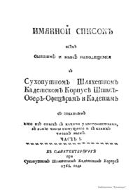 Именной список всем бывшим и ныне находящимся в Сухопутном Шляхетном кадетском корпусе штаб-обер-офицерам и кадетам
