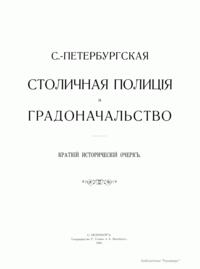 С.-Петербургская Столичная Полицiя и градоначальство. 1703-1903
