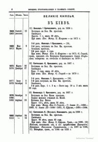 В книге опубликованы две таблицы. В них указан порядок престолонаследия Дома Рюриковичей и Дома Романовых до Александра II, а также сообщаются все основные события, происходившие при великих князьях и царях.