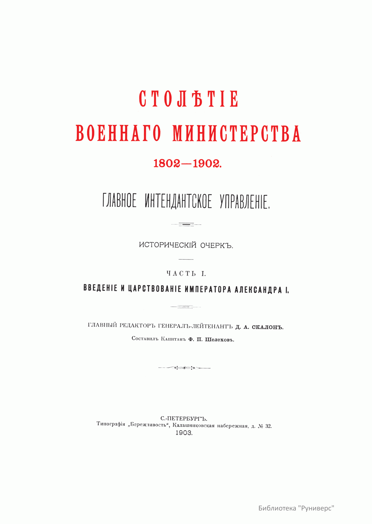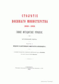 Столѣтiе военнаго министерства. 1802-1902. Главное Интендантское управленiе. Историческiй очеркъ