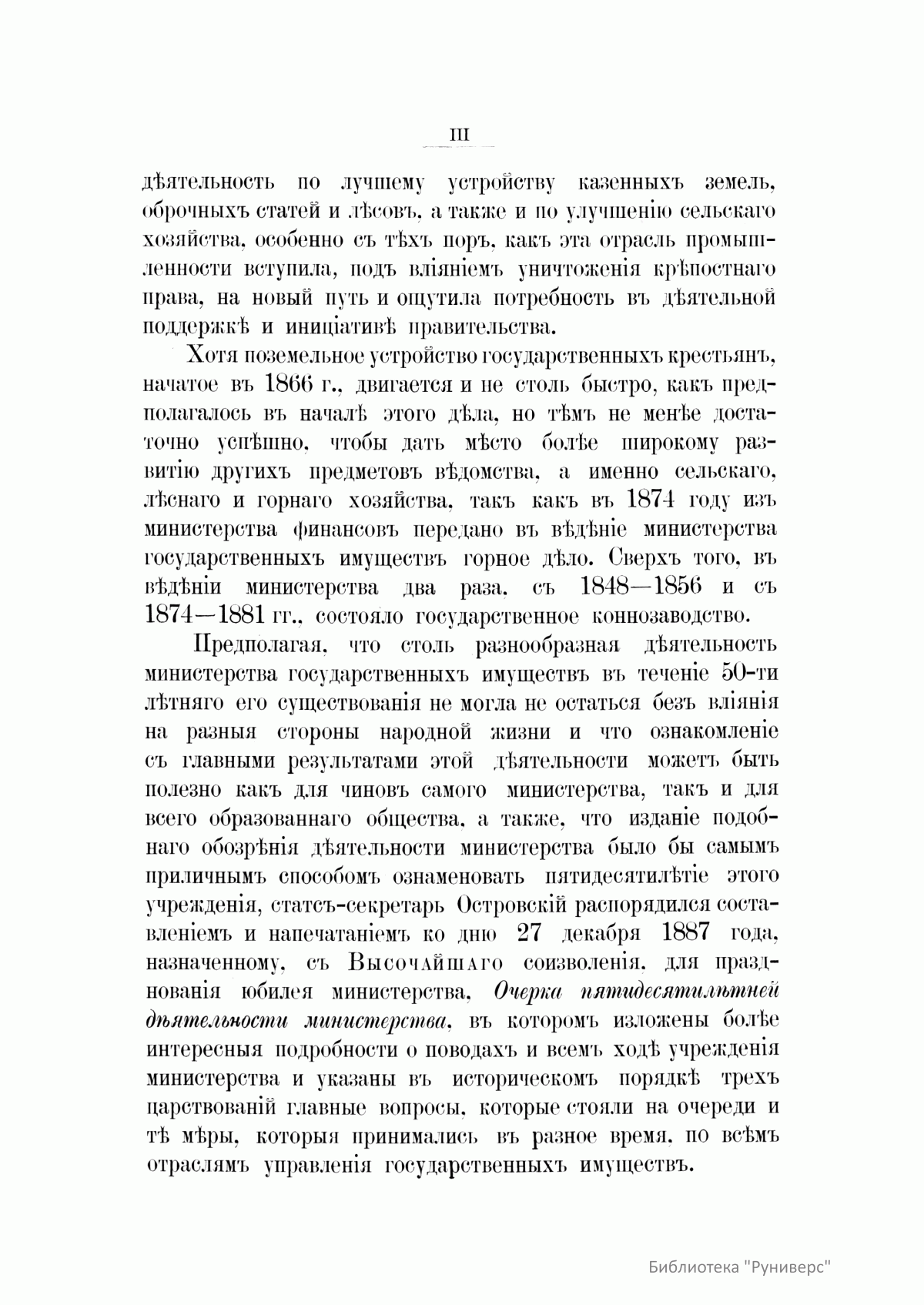 Историческое обозрѣнiе пятидесятилѣтней дѣятельности министерства государственныхъ имуществъ. 1837-1887