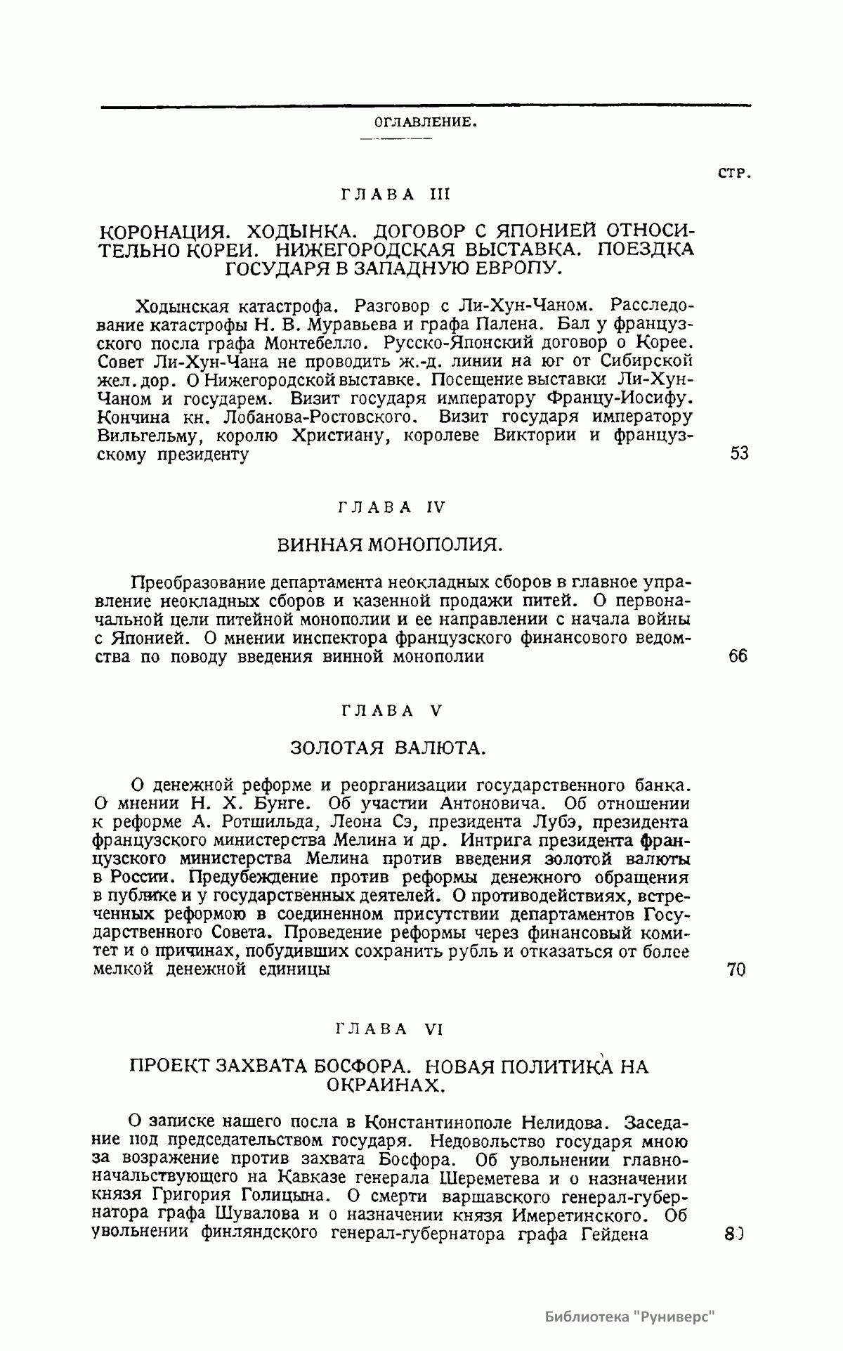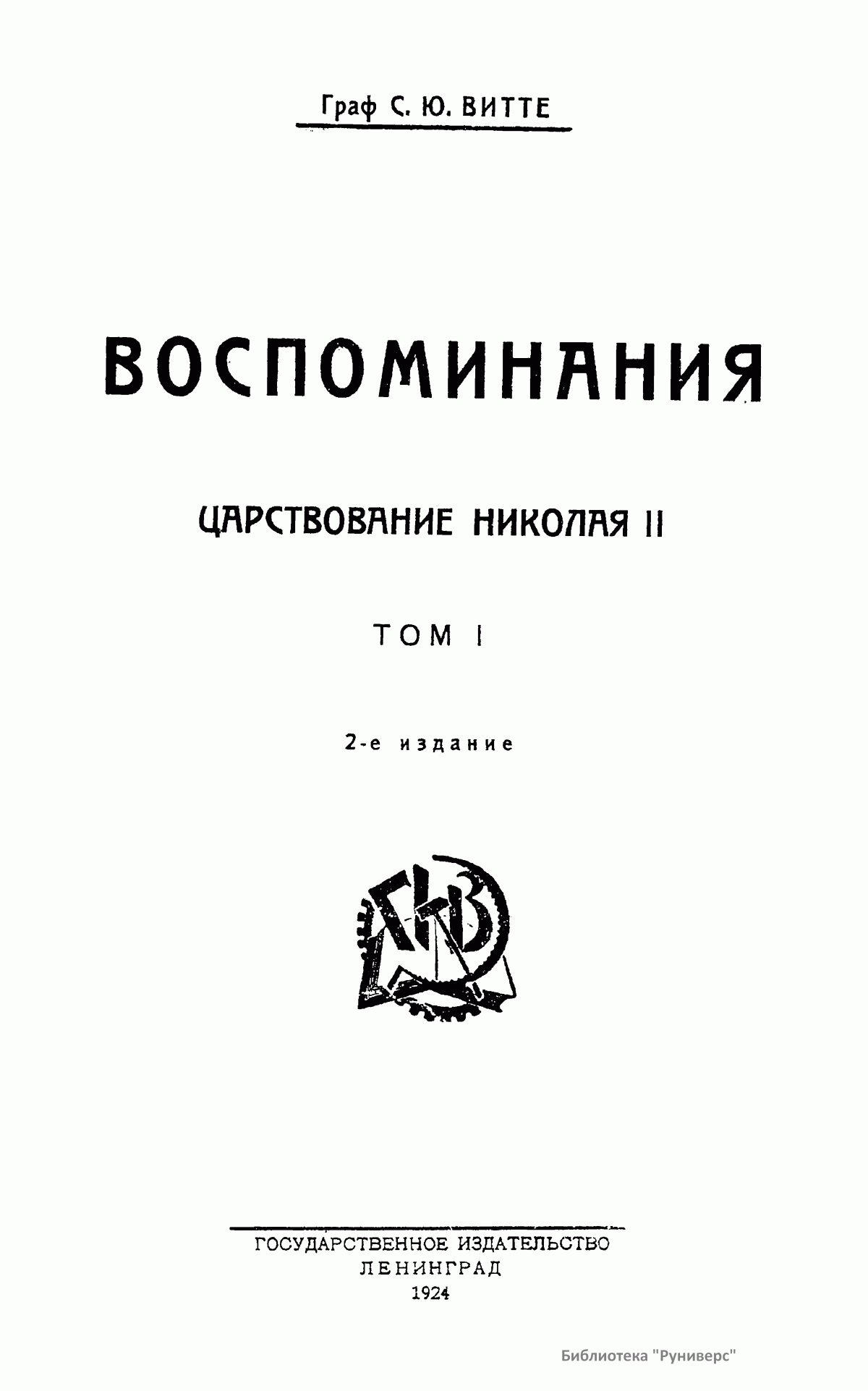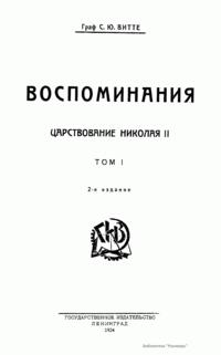 Воспоминания графа, русского государственного деятеля Сергея Юльевича Витте (1849 – 1915) опубликованы в трех томах. Первый том охватывает события от смерти Александра III до 17 октября 1905 года. Второй том – от манифеста 17 октября 1905 года до убийства Столыпина в 1911 г. В третьем томе изложение доведено до смерти Александра III и включает воспоминания о детстве автора. Все три тома снабжены подробным оглавлением.