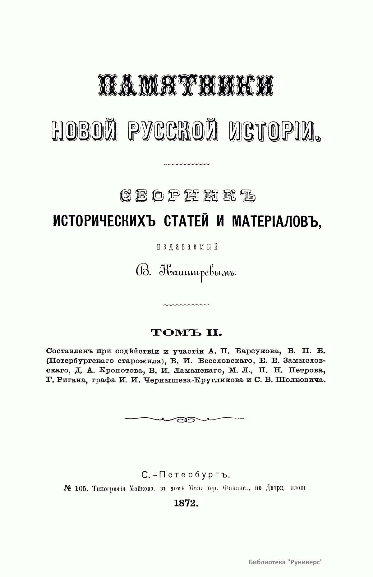 Памятники новой русской исторiи. Томъ II