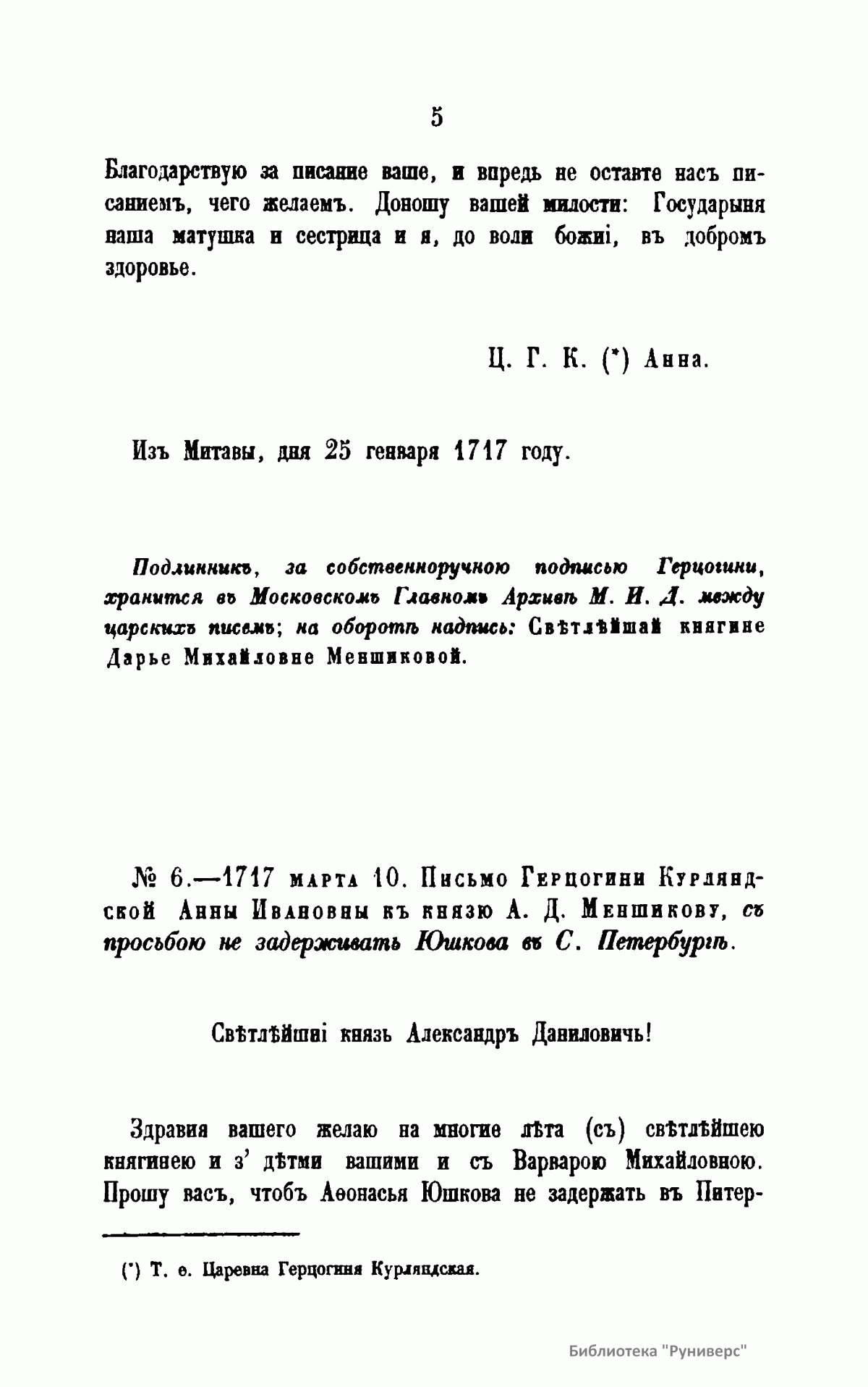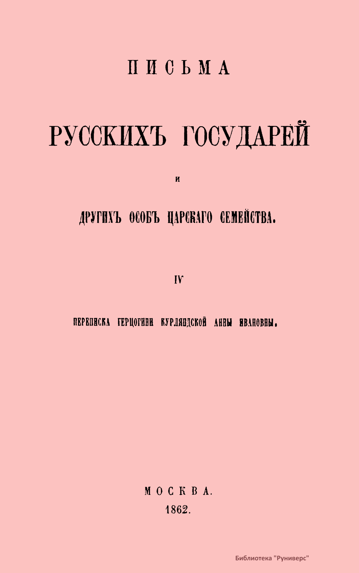 Письма русских государей и других особ царского семейства. IV. Переписка Герцогини Курляндской Анны Ивановны