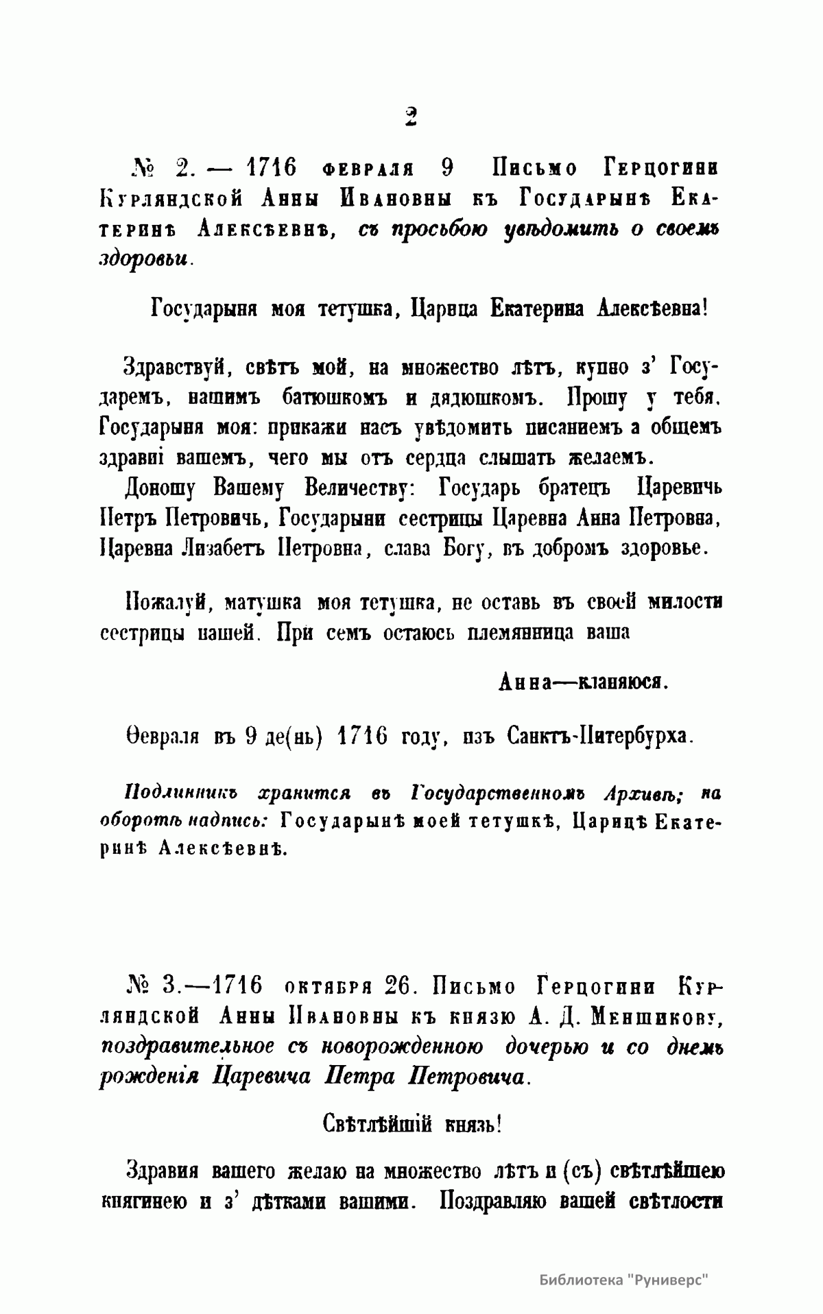 II. Переписка царицы Прасковьи Федоровны и дочерей ее Екатерины и Прасковьи