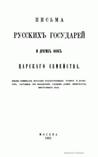 Настоящие письма изданы комиссией печатания государственных грамот и договоров, состоящей при Московском главном архиве министерства иностранных дел. Кроме материалов Главного архива комиссия пользовалась собраниями Государственного архива С.-Петербурга, Императорской публичной библиотеки и Румянцевского музея. Письма русских государей и других особ царского семейства представляют собой любопытный исторический памятник.